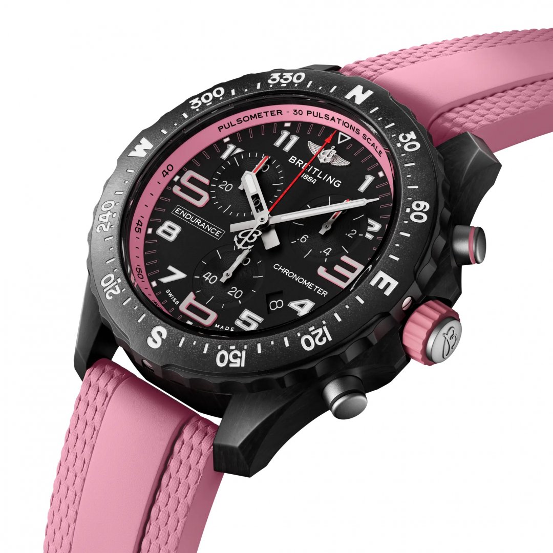 luxusné hodinky luxusné hodinky Breitling Endurance Pro Breitlight® - Black Ultra ľahké, 38 mm. Hodinky disponujú funkciami luminiscencia, stopky, ukazovateľ dátumu a E.O.L.. Základné parametre hodín sú: farba ciferníka je čierna, materiál remienka je kaučuk, vode odolnosť je 100 m a typ strojčeka je Quartz chronograf.