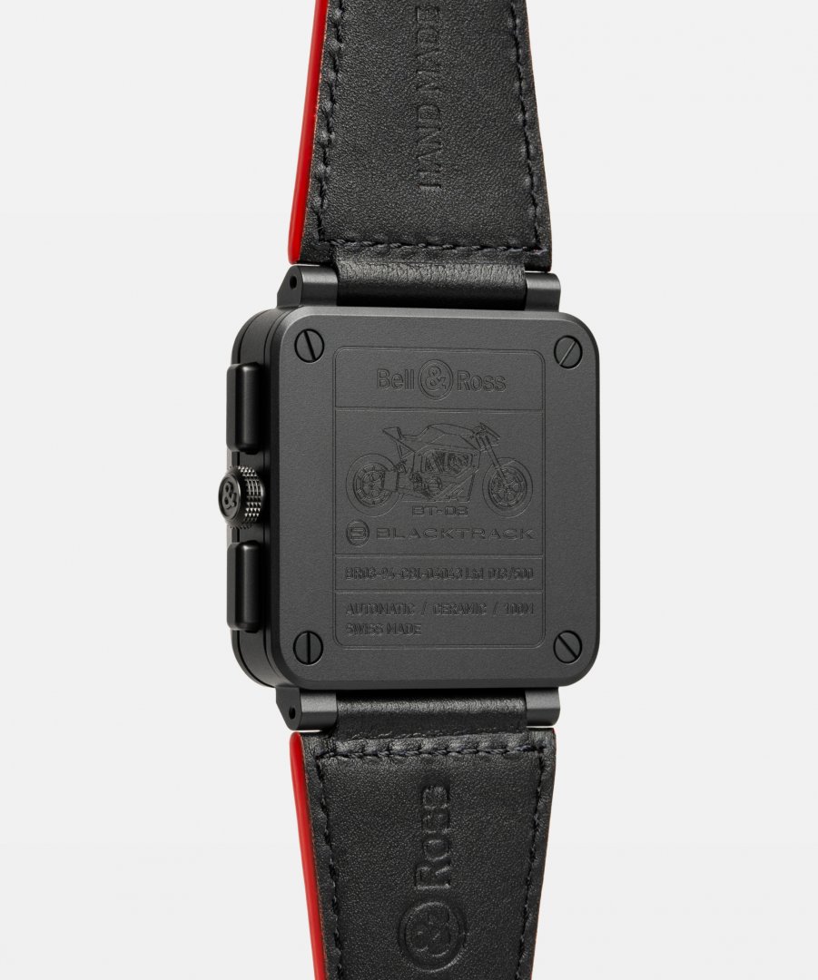 luxusní hodinky Bell & Ross BR 03 CHRONO 94 Blacktrack Automat Chronograf, 42 mm. Hodinky disponují funkcemi luminiscence, stopky a ukazatel data. Základní parametry hodinek jsou: barva číselníku je černá, typ strojku je mechanický chronograf s automatickým nátahem, materiál řemínku je kůže a vodotěsnost je 100 m.