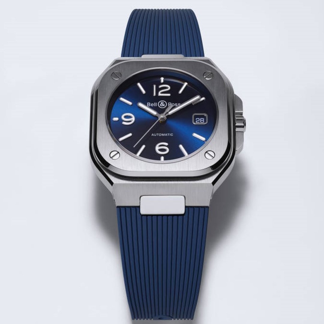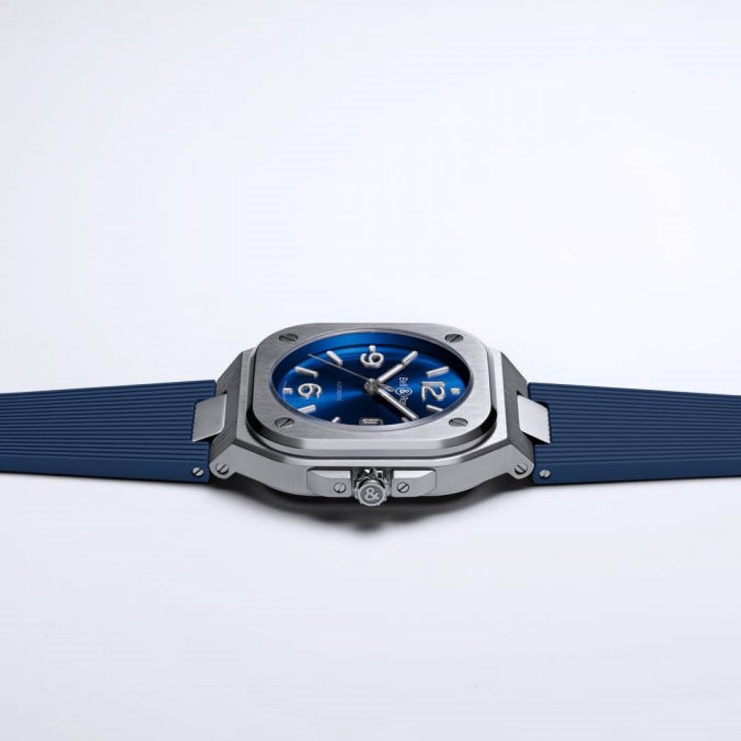 luxusní hodinky Bell & Ross BR 05 AUTO BLUE STEEL Ocel, 40 mm. Hodinky disponují funkcemi luminiscence a ukazatel data. Základní parametry hodinek jsou: vodotěsnost je 100 m, barva číselníku je modrá, materiál řemínku je kaučuk a typ strojku je mechanické hodinky s automatickým nátahem.