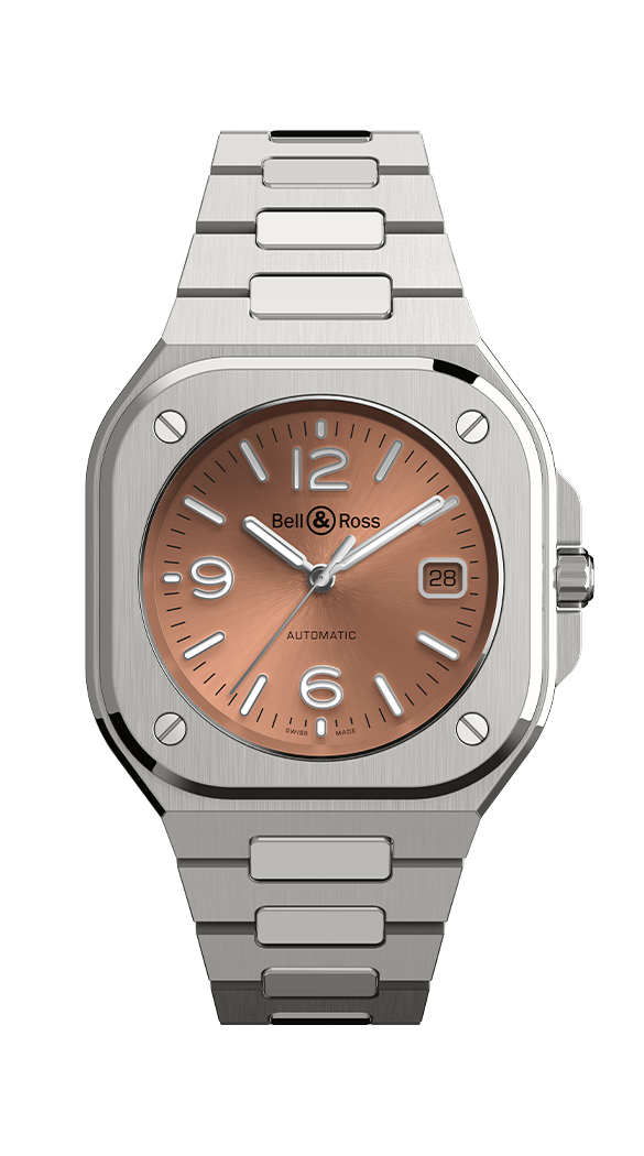 luxusní hodinky Bell & Ross BR 05 AUTO BROWN STEEL Ocel, 40 mm. Hodinky disponují funkcemi luminiscence a ukazatel data. Základní parametry hodinek jsou: vodotěsnost je 100 m, materiál řemínku je ocel, typ strojku je mechanické hodinky s automatickým nátahem a barva číselníku je hnědá.