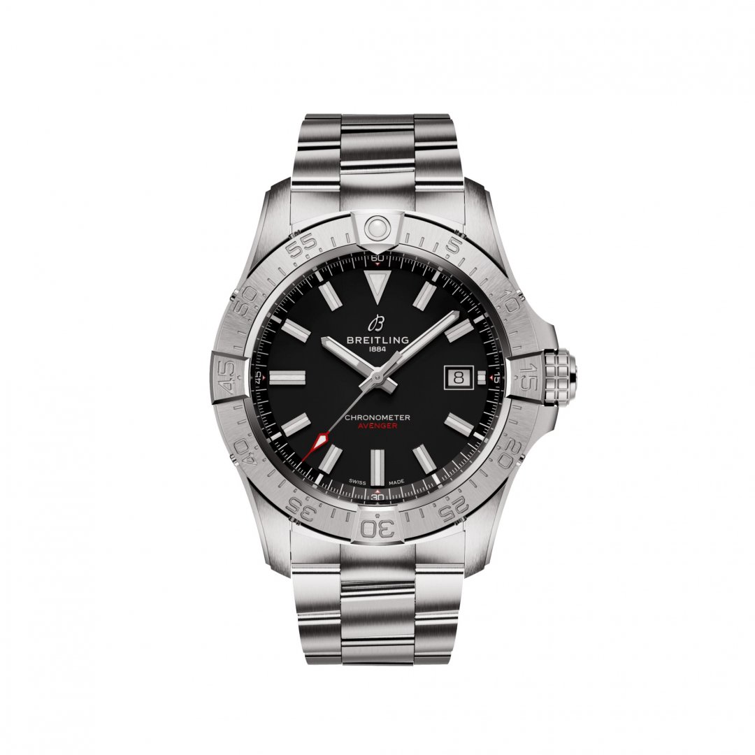 luxusní hodinky Breitling Avenger Automatic 42 Automat, Vodotěsnost 300M, 42 mm. Hodinky disponují funkcemi luminiscence a ukazatel data. Základní parametry hodinek jsou: vodotěsnost je 300 m, typ strojku je mechanické hodinky s automatickým nátahem, materiál řemínku je ocel a barva číselníku je černá.
