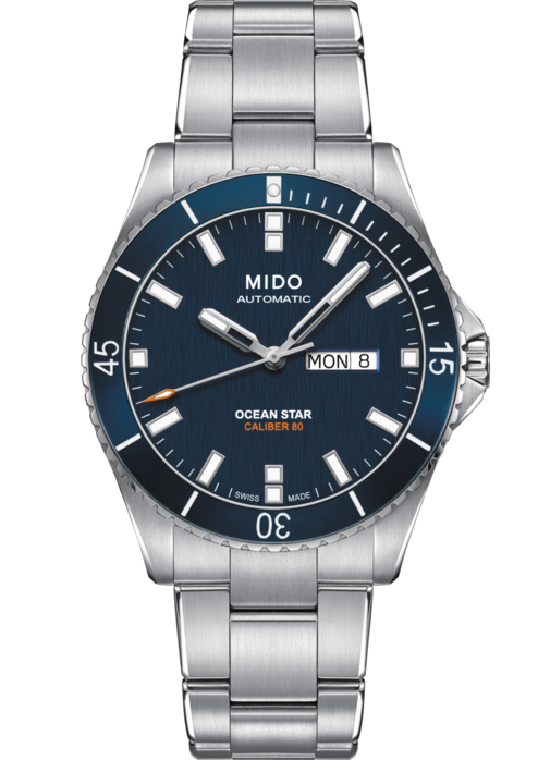 Luxusní hodinky Mido Ocean Star Automat, Vode odolnosť 200M, 42.50 mm. Hodinky disponují funkcemi luminiscence, ukazatel data a Day-Date. Základní parametry hodinek jsou: typ strojku je mechanické hodinky s automatickým nátahem, vodotěsnost je 200 m, barva číselníku je modrá a materiál řemínku je ocel.