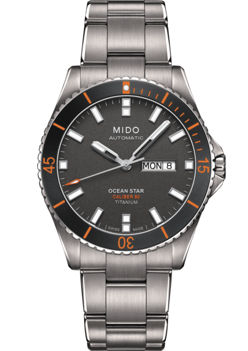Luxusní hodinky Mido Ocean Star Automat, Vode odolnosť 200M, 42.50 mm. Hodinky disponují funkcemi luminiscence, ukazatel data a Day-Date. Základní parametry hodinek jsou: barva číselníku je šedá, typ strojku je mechanické hodinky s automatickým nátahem, materiál řemínku je titan a vodotěsnost je 200 m.