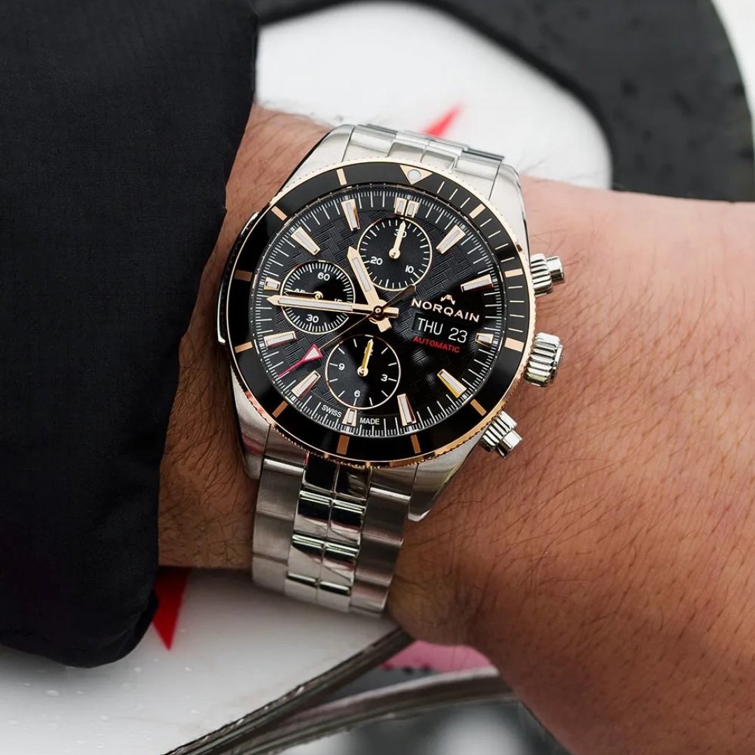 NORQAIN je hodinářská společnost, která se odvážila vybrat svou vlastní cestou. Sídlí v Alpském městečku Biel v srdci hodinářského kraje. Jsme velmi hrdí na to, že jsme nezávislou rodinnou firmou s dlouhodobou vizí, a pohání nás vzrušení z objevování neznámého.
