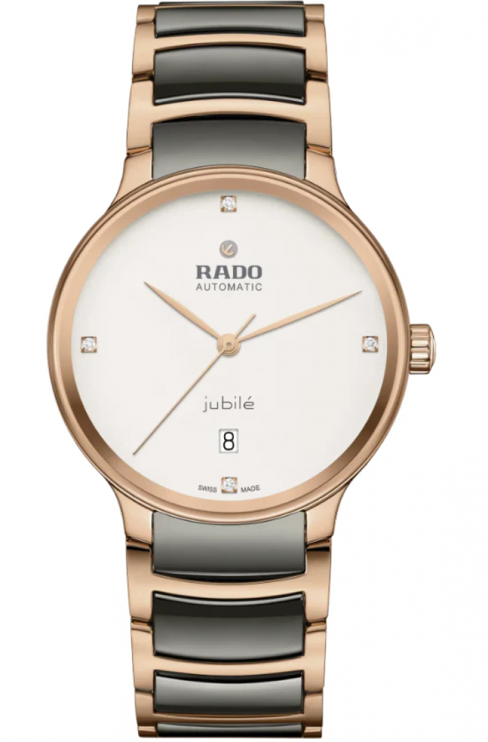 luxusní hodinky luxusní hodinky Rado Centrix Diamanty, Automat, 39.50 mm. Hodinky disponují funkcemi ukazatel data. Základní parametry hodinek jsou: barva číselníku je béžová, typ strojku je mechanické hodinky s automatickým nátahem, materiál řemínku je ocel a plasma keramika a vodotěsnost je 50 m.