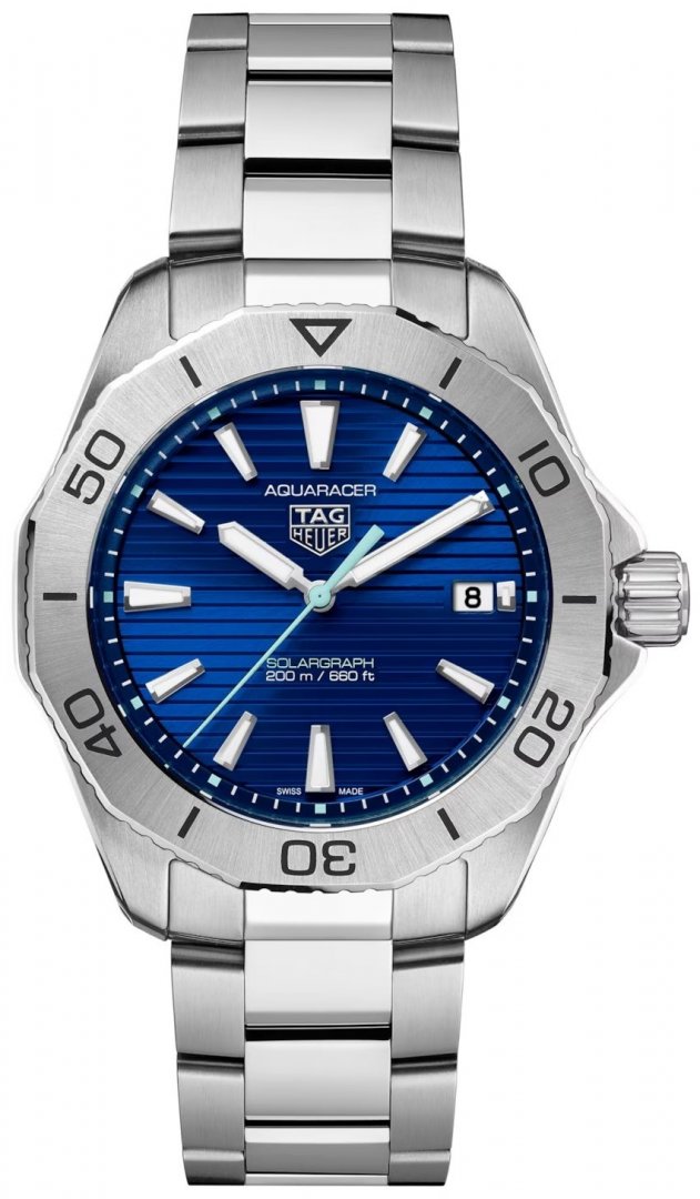 luxusní hodinky TAG Heuer Aquaracer PROFESSIONAL 200 DATE Quartz, Voděodolnost 200M, 40 mm. Hodinky disponují funkcemi luminiscence a ukazatel data. Základní parametry hodinek jsou: materiál řemínku je ocel, vodotěsnost je 200 m, typ strojku je Quartz hodinky a barva číselníku je modrá.