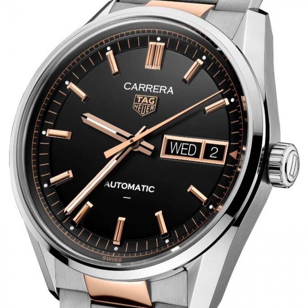luxusní hodinky TAG Heuer Carrera TH31-02, Zlato, Voděodolnost 100M, 41 mm. Hodinky disponují funkcemi luminiscence, ukazatel data a Day-Date. Základní parametry hodinek jsou: typ strojku je mechanické hodinky s automatickým nátahem, vodotěsnost je 100 m, barva číselníku je černá a materiál řemínku je ocel a zlato.