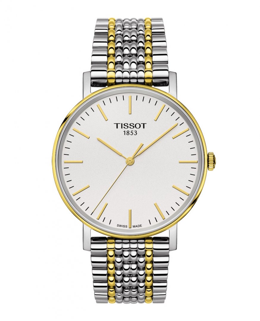 luxusní hodinky módní hodinky Tissot T-Classic EVERYTIME GENT Quartz, 38 mm. Hodinky disponují funkcemi E.O.L.. Základní parametry hodinek jsou: typ strojku je Quartz hodinky, vodotěsnost je 30 m, barva číselníku je bílá a materiál řemínku je ocel.