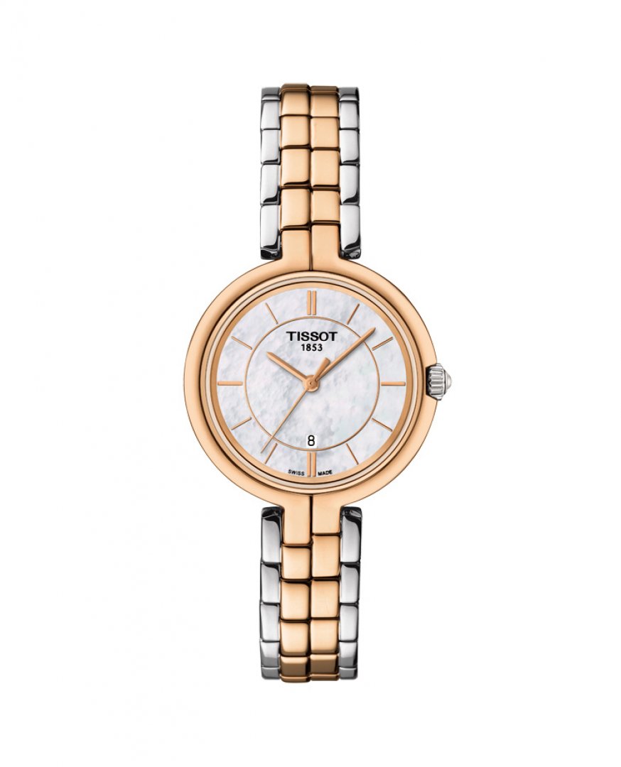 Módní hodinky Tissot T-Lady FLAMINGO, Quartz, 26 mm. Hodinky disponují funkcemi ukazovateľ dátumu. Základní parametry hodinek jsou: typ strojku je Quartz hodinky, vodotěsnost je 50 m, barva číselníku je perleť a materiál řemínku je ocel.
