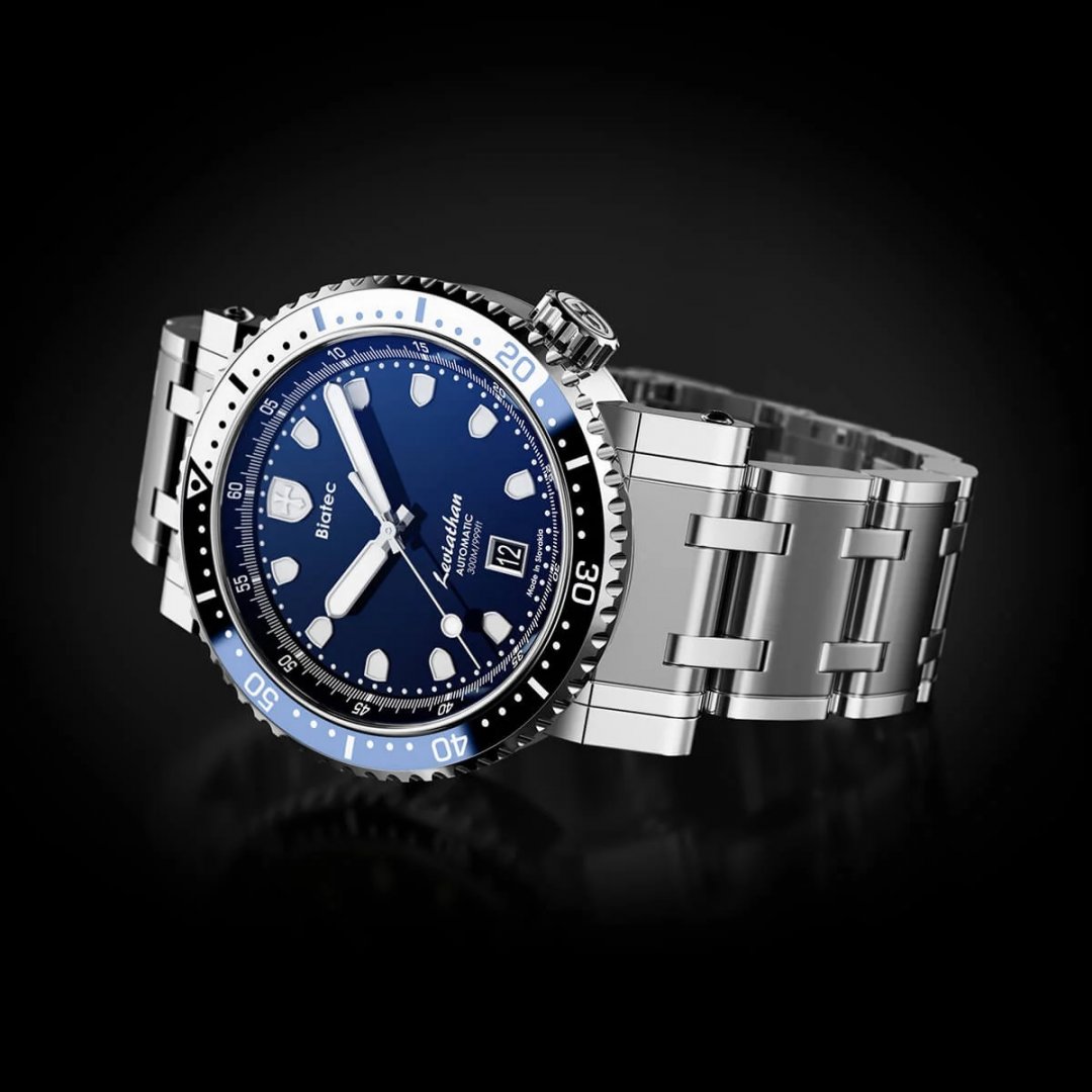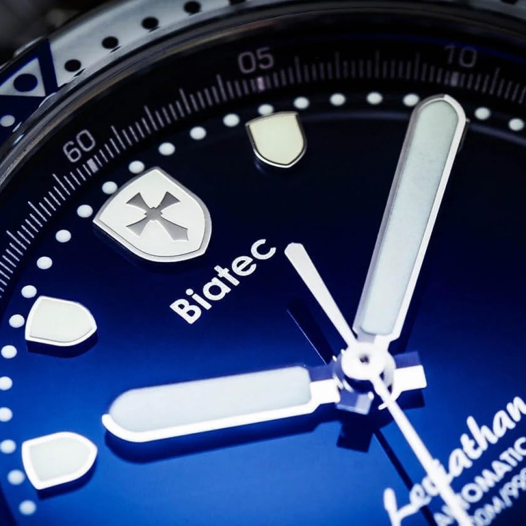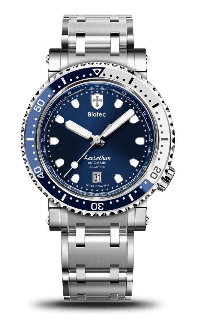 Biatec LEVITHIAN 02 Automatik, Wasserdicht 300M, 40 mm. Die Uhr hat folgende Funktionen: Lumineszenz und Datum . Die Grundparameter der Uhr sind: ziffernblattfarbe ist blau, bewegungsart ist mechanische Uhr mit automatischem Aufzug, armbandmaterial ist Stahl und wasserabweisend ist 300 m.