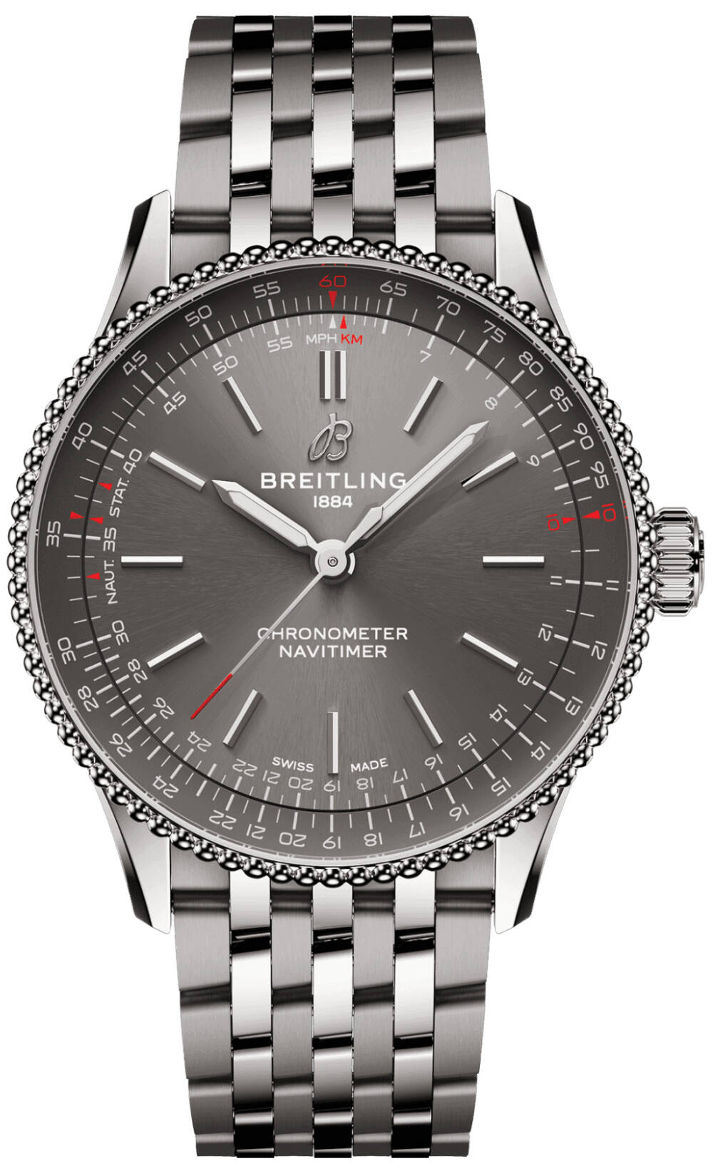 Breitling Navitimer Automatic 36 Automatik, 36 mm. Die Uhr hat folgende Funktionen: Lumineszenz. Die Grundparameter der Uhr sind: bewegungsart ist mechanische Uhr mit automatischem Aufzug, wasserabweisend ist 30 m, armbandmaterial ist Stahl und ziffernblattfarbe ist grau.