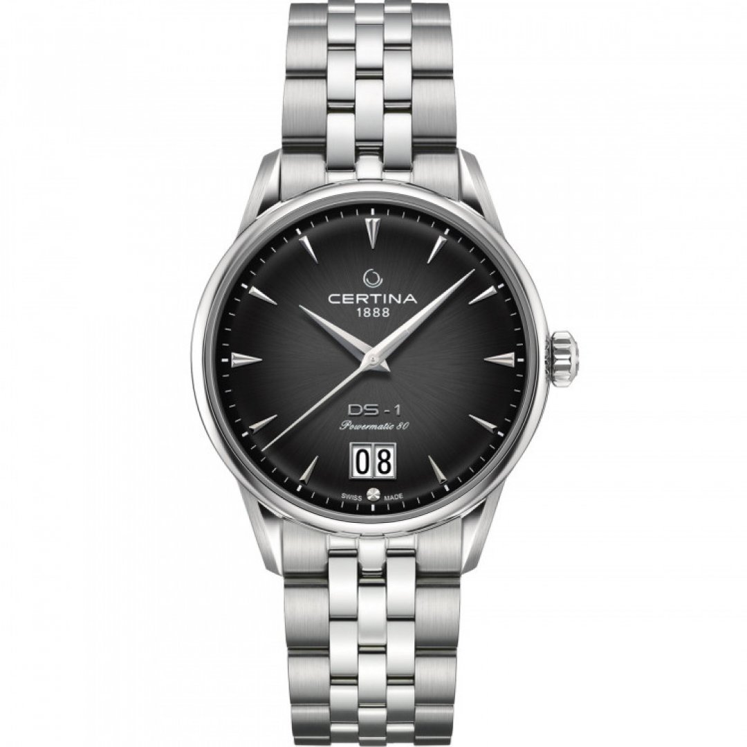 Certina DS-1 Gent . Die Uhr hat folgende Funktionen: Datum . Die Grundparameter der Uhr sind: ziffernblattfarbe ist grau, bewegungsart ist mechanische Uhr mit automatischem Aufzug, armbandmaterial ist Stahl und wasserabweisend ist 100 m.