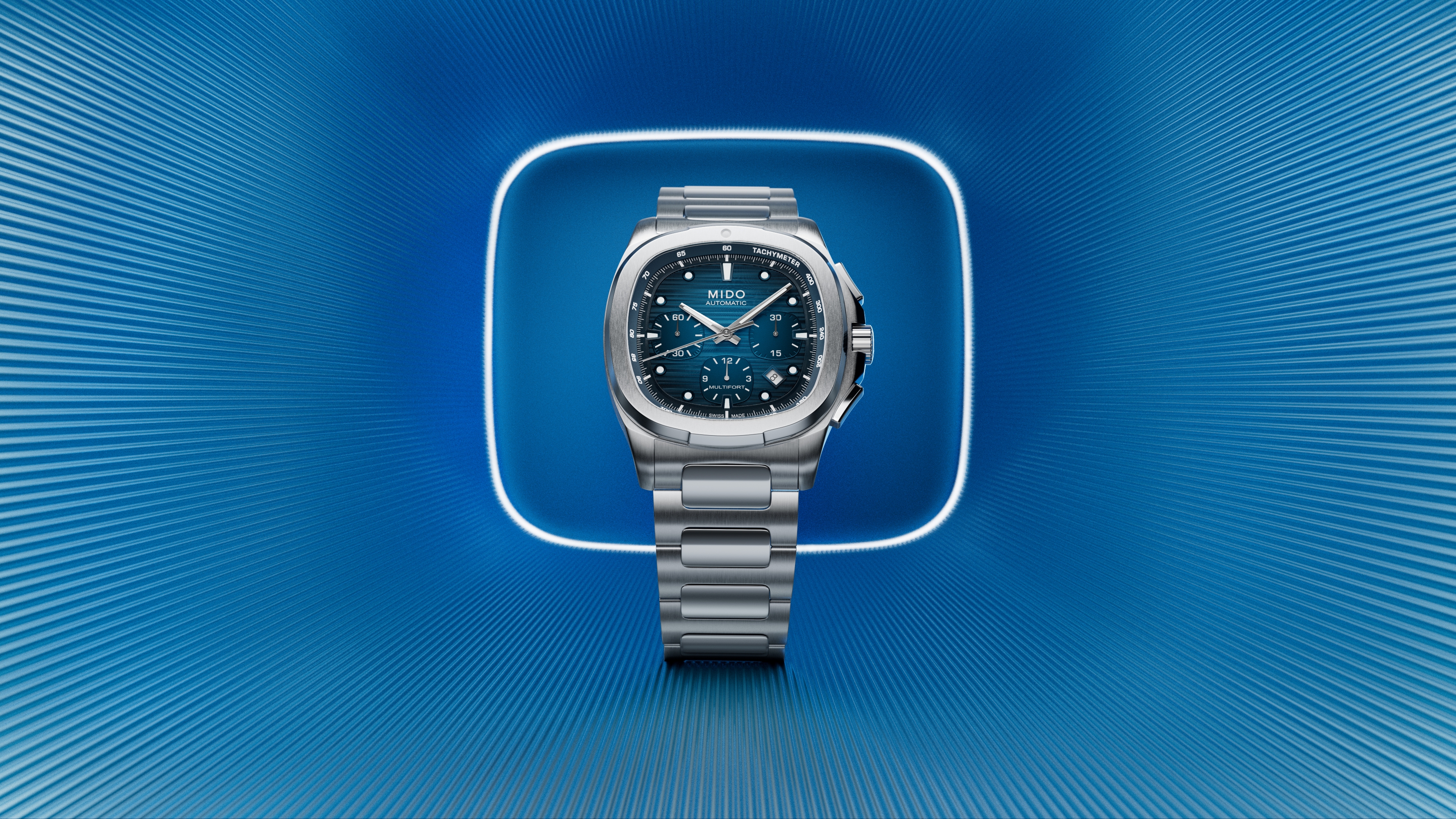 Die 70er Jahre kommen auf den Bildschirm: Mido Multifort TV Chronograph mit einem Gehäuse in Form eines Fernsehbildschirms