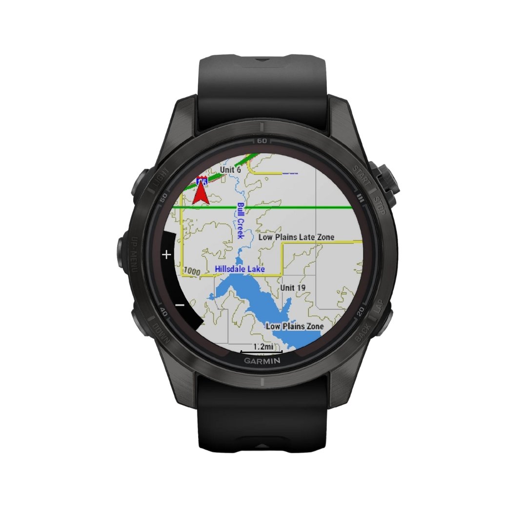Garmin Fénix 7 S Pro Sapphire Solar, Carbon Gray DLC Titanium, Black Band 42 mm. Die Uhr hat folgende Funktionen: Alarm, Barometer, GPS, Tiefenmesser, Datum, Kompass, Herzfrequenzüberwachung, Beleuchtung, Countdown, Stoppuhr, Weltzeit, Tachymeter-Skala, Thermometer, Trainingsfunktionen, Datum , ewiger Kalender, Höhenmesser , multifunktional, GPS , GLONASS , GALILEO, Akcelerometer, Garmin Pay™, hochempfindlicher Empfänger, Option zum Hochladen von Karten, Bluetooth®, Wi-Fi®, MP3-Spieler, Touchscreen, Strava-Segment und LED Baterka. Die Grundparameter der Uhr sind: bewegungsart ist spezial, armbandmaterial ist Silikon und wasserabweisend ist 100 m.