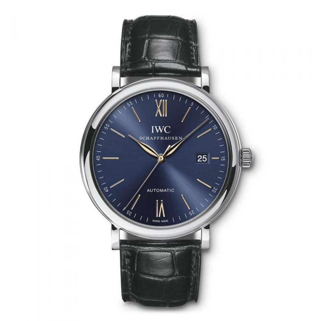 IWC Schaffhausen Portofino AUTOMATIC . Die Uhr hat folgende Funktionen: Datum . Die Grundparameter der Uhr sind: bewegungsart ist mechanische Uhr mit automatischem Aufzug, armbandmaterial ist Leder, wasserabweisend ist 30 m und ziffernblattfarbe ist blau.