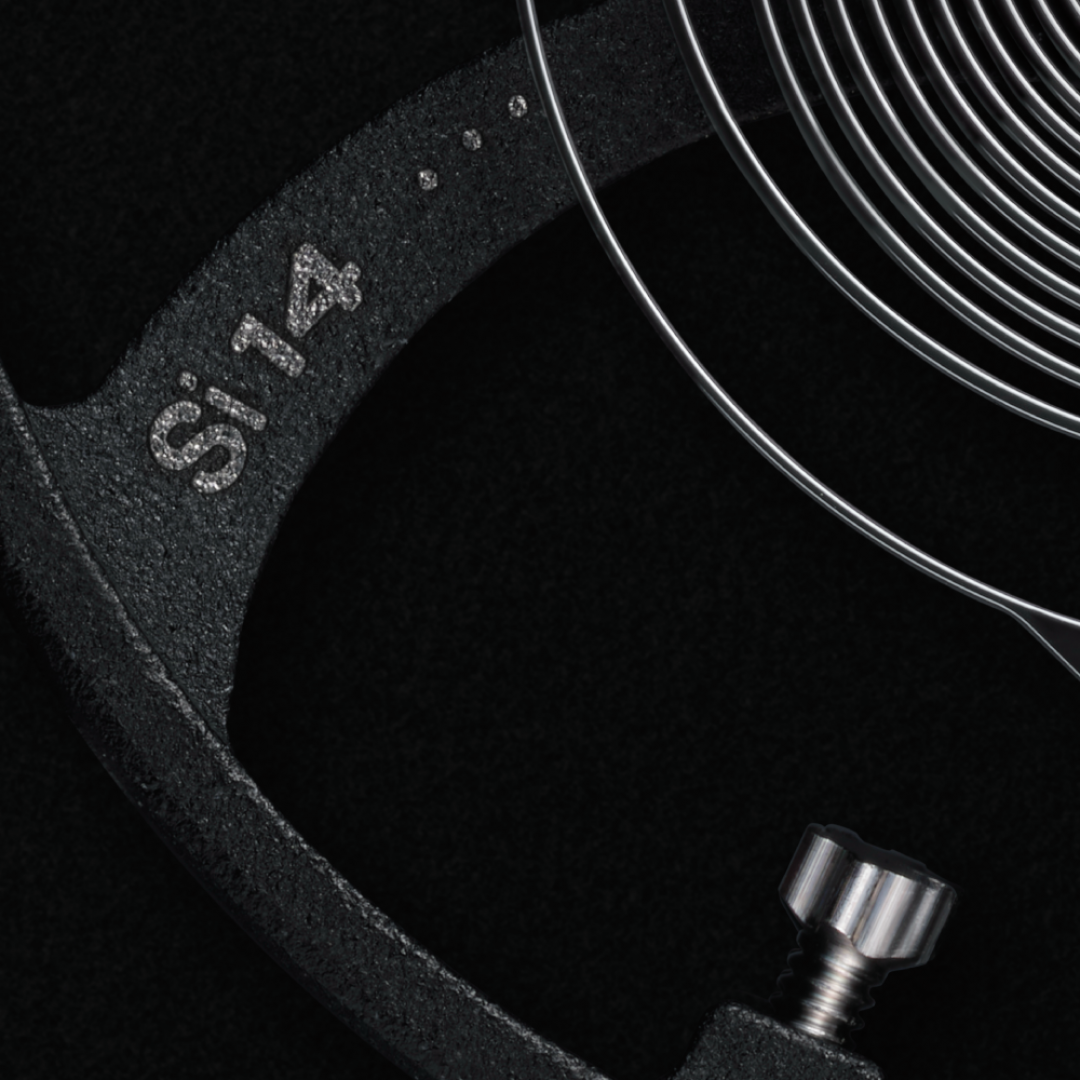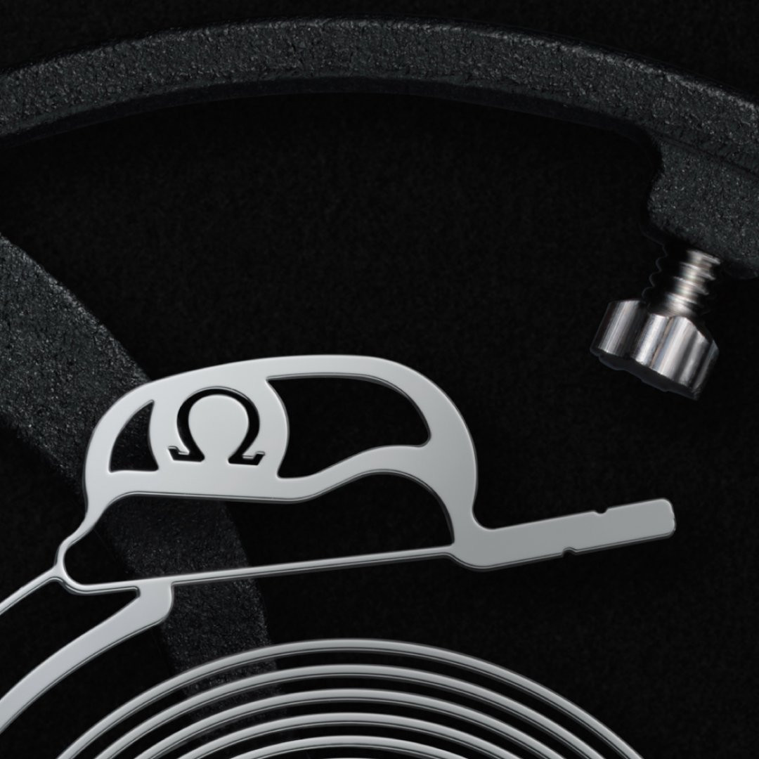Um dies zu erreichen, musste OMEGA das Rad quasi neu erfinden. Die innovative Lösung bestand darin, einen völlig neuen Siliziumoszillator (Si14) zu entwickeln, der es dem Uhrmacher ermöglicht, die Steifigkeit der Spiralfeder zu beeinflussen. Dies geschieht über einen Einstellpunkt, der exzentrisch auf der Brücke darüber angeordnet ist.