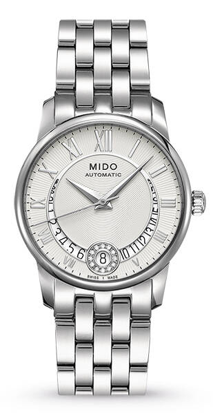 Mido Baroncelli Diamonds . Die Uhr hat folgende Funktionen: Datum . Die Grundparameter der Uhr sind: bewegungsart ist mechanische Uhr mit automatischem Aufzug, wasserabweisend ist 50 m, ziffernblattfarbe ist silbern und armbandmaterial ist Stahl.