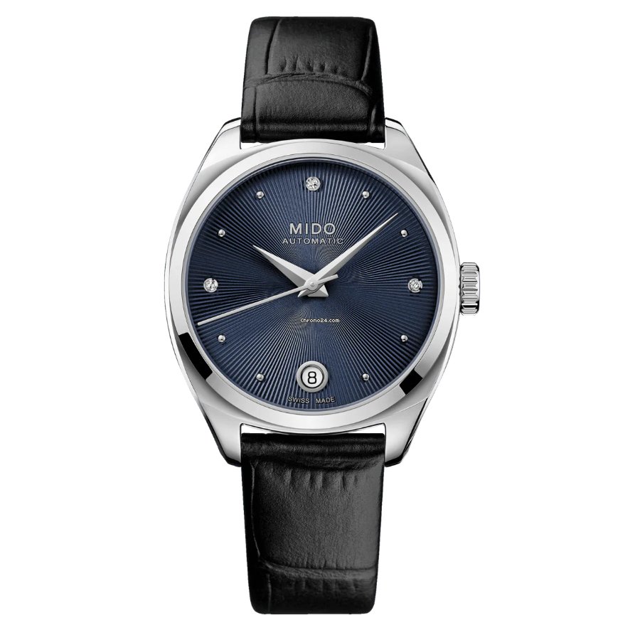 Mido Belluna Royal Lady . Die Uhr hat folgende Funktionen: Datum . Die Grundparameter der Uhr sind: bewegungsart ist mechanische Uhr mit automatischem Aufzug, wasserabweisend ist 30 m, ziffernblattfarbe ist blau und armbandmaterial ist Leder.