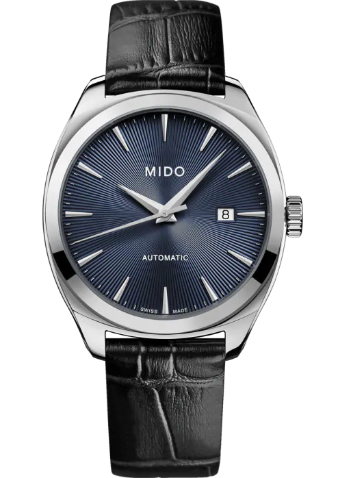 Mido Belluna Royal Gent . Die Uhr hat folgende Funktionen: Datum . Die Grundparameter der Uhr sind: ziffernblattfarbe ist blau, bewegungsart ist mechanische Uhr mit automatischem Aufzug, armbandmaterial ist Leder und wasserabweisend ist 50 m.