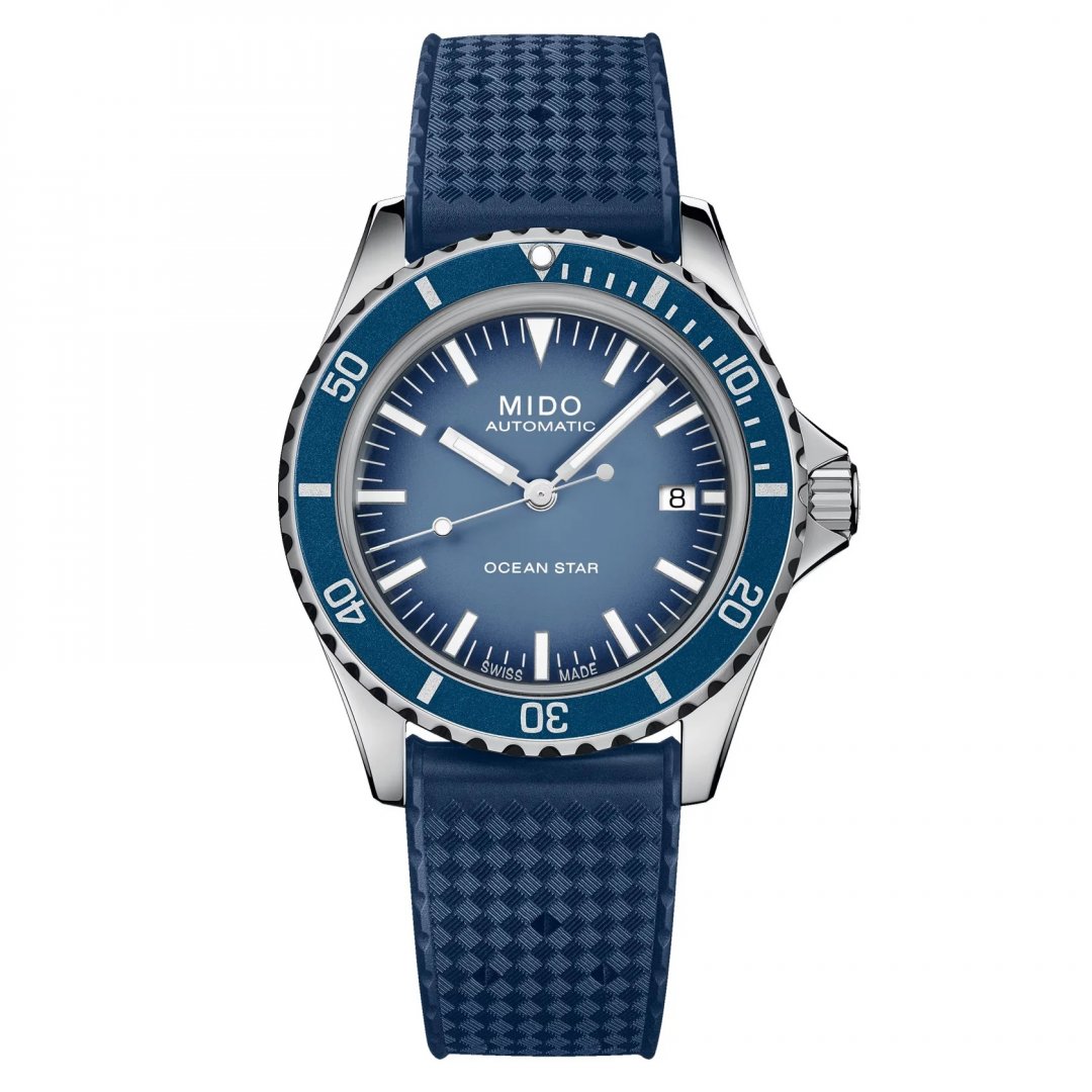 Mido Ocean Star Tribute Calibre 80, 2 aditional straps. Die Uhr hat folgende Funktionen: Lumineszenz und Datum . Die Grundparameter der Uhr sind: bewegungsart ist mechanische Uhr mit automatischem Aufzug, armbandmaterial ist Stahl und Gummi, wasserabweisend ist 200 m und ziffernblattfarbe ist blau.