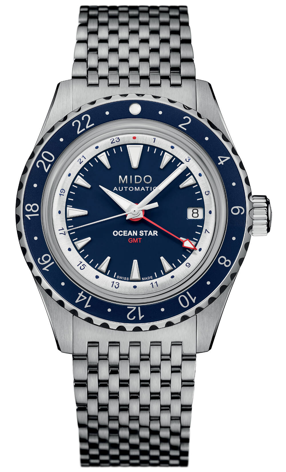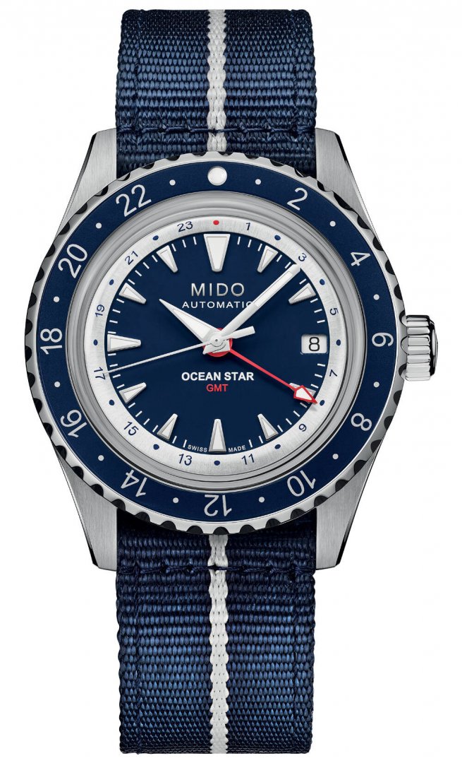 Mido Ocean Star GMT SPECIAL EDITION Automatik, Wasserdicht 200M, 40.50 mm. Die Uhr hat folgende Funktionen: Dualzeit, Lumineszenz und Datum . Die Grundparameter der Uhr sind: ziffernblattfarbe ist blau, bewegungsart ist mechanische Uhr mit automatischem Aufzug, armbandmaterial ist Stahl und Textilien und wasserabweisend ist 200 m.