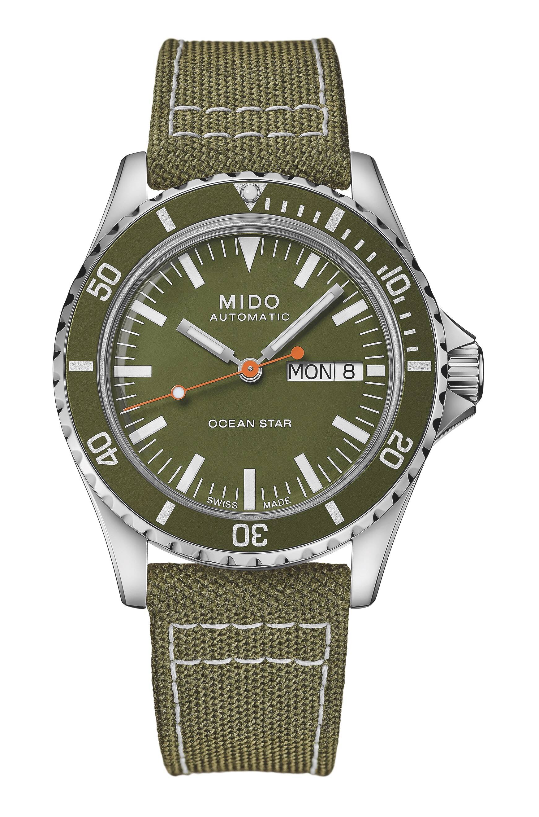 Mido Ocean Star TRIBUTE Mido Ocean Star Tribute .. Die Uhr hat folgende Funktionen: Lumineszenz und Day-Date. Die Grundparameter der Uhr sind: ziffernblattfarbe ist grün, bewegungsart ist mechanische Uhr mit automatischem Aufzug, armbandmaterial ist Textilien und wasserabweisend ist 200 m.