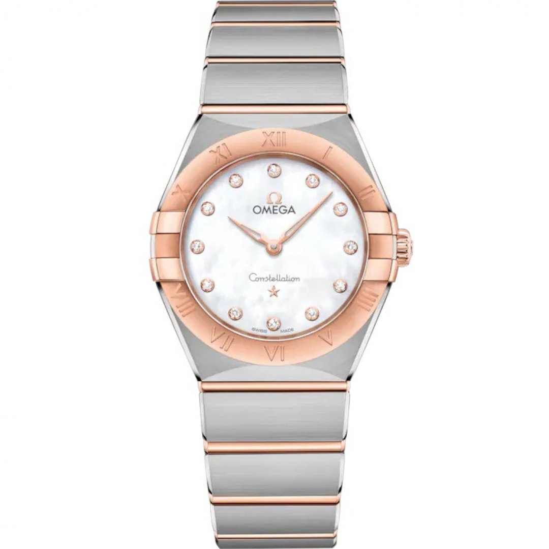 Omega Constellation Sedna™ gold & Diamante, Quartz, 28 mm. Die Uhr hat folgende Funktionen: Lumineszenz. Die Grundparameter der Uhr sind: ziffernblattfarbe ist perlmuttern, bewegungsart ist Quarzuhren, armbandmaterial ist Stahl und Gold und wasserabweisend ist 100 m.