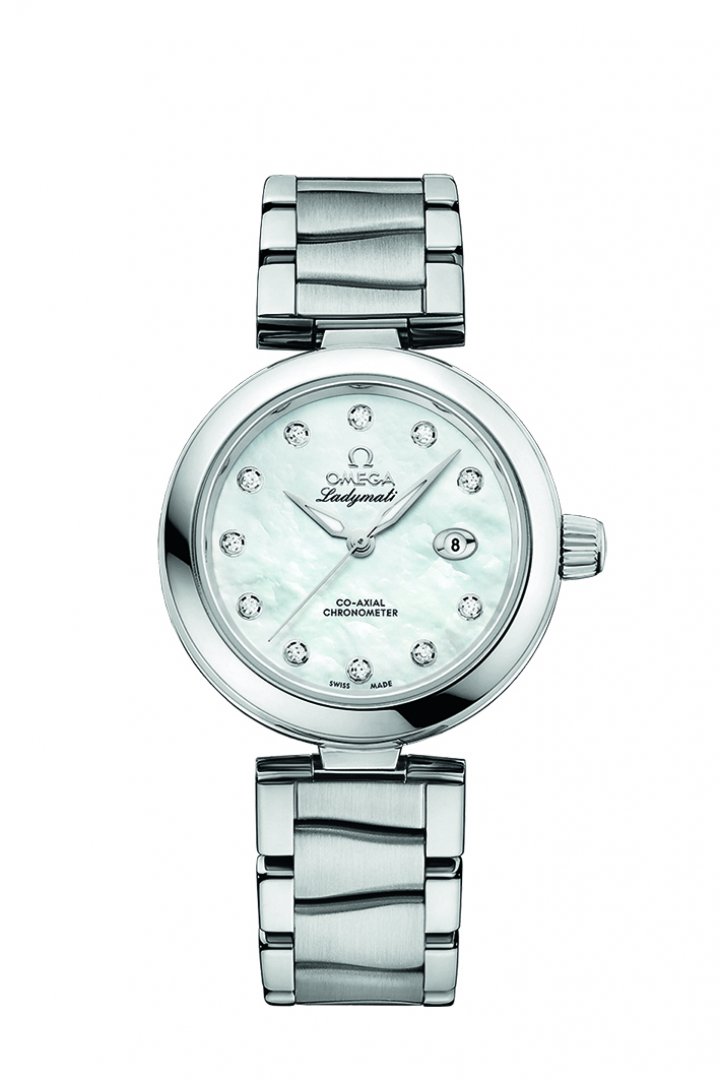 Omega De Ville Ladymatic . Die Uhr hat folgende Funktionen: Lumineszenz und Datum . Die Grundparameter der Uhr sind: ziffernblattfarbe ist perlmuttern, bewegungsart ist mechanische Uhr mit automatischem Aufzug, wasserabweisend ist 100 m und armbandmaterial ist Stahl.