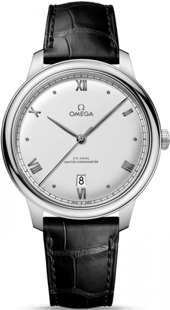 Omega De Ville Prestige Automatik, 40 mm. Die Uhr hat folgende Funktionen: Datum . Die Grundparameter der Uhr sind: ziffernblattfarbe ist silbern, bewegungsart ist mechanische Uhr mit automatischem Aufzug, armbandmaterial ist Leder und wasserabweisend ist 30 m.