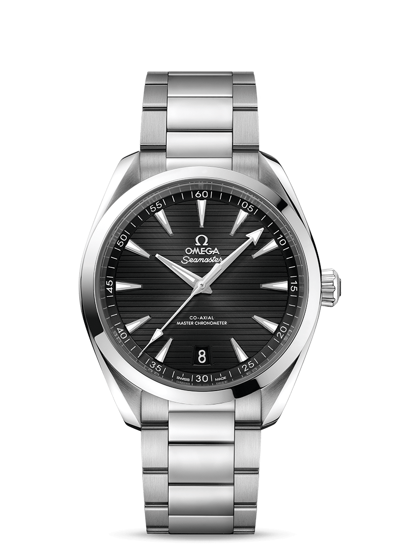 Omega Seamaster Aqua Terra 150M . Die Uhr hat folgende Funktionen: Lumineszenz und Datum . Die Grundparameter der Uhr sind: ziffernblattfarbe ist schwarz, bewegungsart ist mechanische Uhr mit automatischem Aufzug, armbandmaterial ist Stahl und wasserabweisend ist 150 m.
