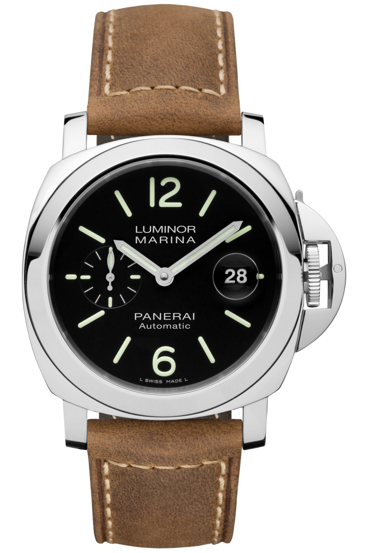 Panerai Luminor . Die Uhr hat folgende Funktionen: Lumineszenz und Datum . Die Grundparameter der Uhr sind: ziffernblattfarbe ist schwarz, bewegungsart ist mechanische Uhr mit automatischem Aufzug, armbandmaterial ist Leder und wasserabweisend ist 300 m.