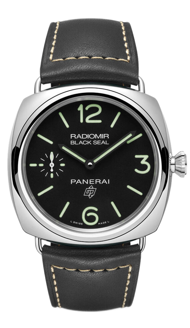 Panerai Radiomir Black Seal Logo . Die Uhr hat folgende Funktionen: Lumineszenz. Die Grundparameter der Uhr sind: bewegungsart ist mechanische Uhr mit Handaufzug , armbandmaterial ist Leder, wasserabweisend ist 100 m und ziffernblattfarbe ist schwarz.