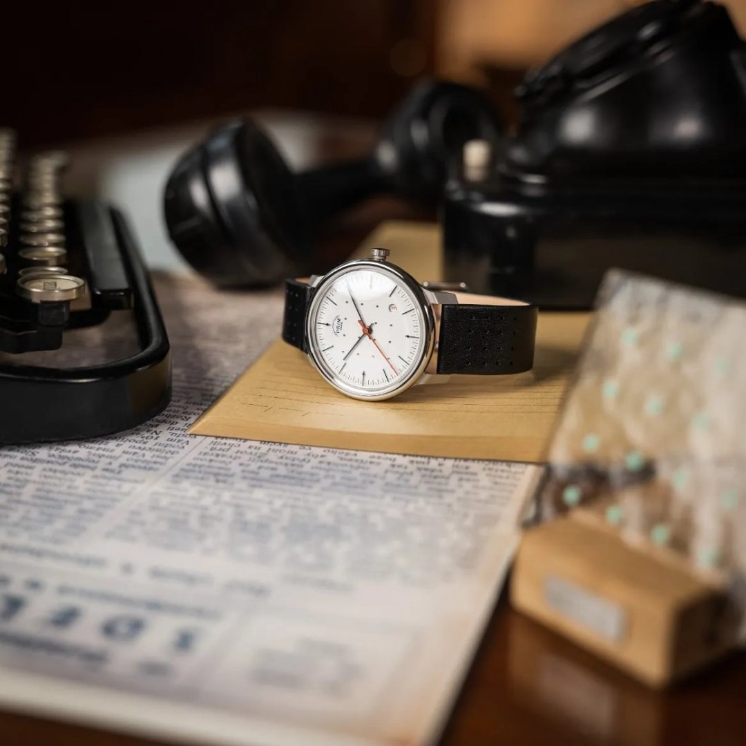 Prim Tomáš Baťa LE In-house movement, Limited edition 100pcs, 41 mm. Die Uhr hat folgende Funktionen: Datum . Die Grundparameter der Uhr sind: ziffernblattfarbe ist weiß, bewegungsart ist mechanische Uhr mit Handaufzug , armbandmaterial ist Leder und wasserabweisend ist 50 m.