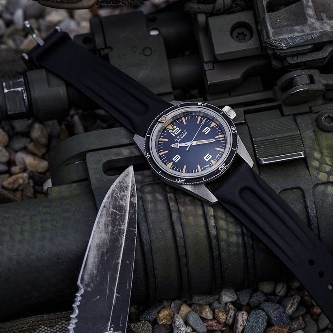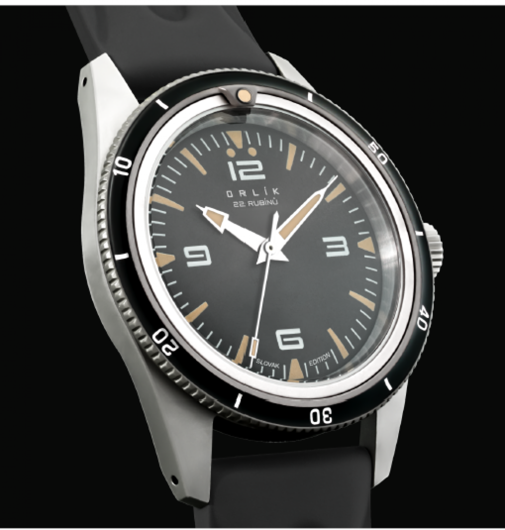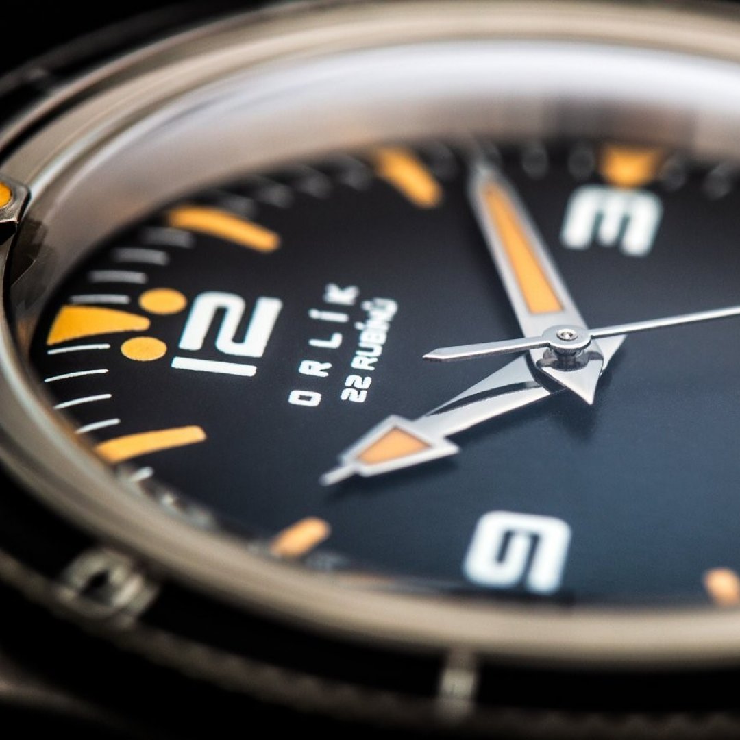 Elton Orlík 38 In-House, 38 mm. Die Uhr hat folgende Funktionen: Lumineszenz. Die Grundparameter der Uhr sind: bewegungsart ist mechanische Uhr mit automatischem Aufzug, wasserabweisend ist 100 m, ziffernblattfarbe ist schwarz und armbandmaterial ist Gummi.
