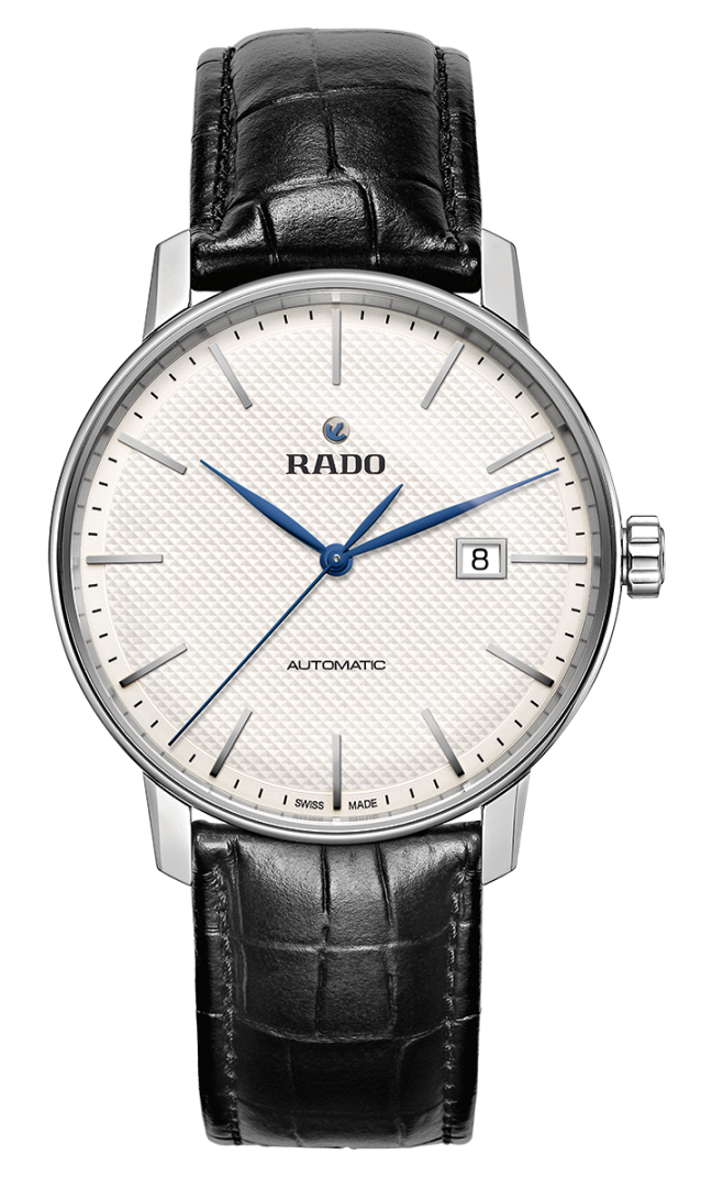 Rado Coupole . Die Uhr hat folgende Funktionen: Datum . Die Grundparameter der Uhr sind: ziffernblattfarbe ist weiß, bewegungsart ist mechanische Uhr mit automatischem Aufzug, armbandmaterial ist Leder und wasserabweisend ist 50 m.