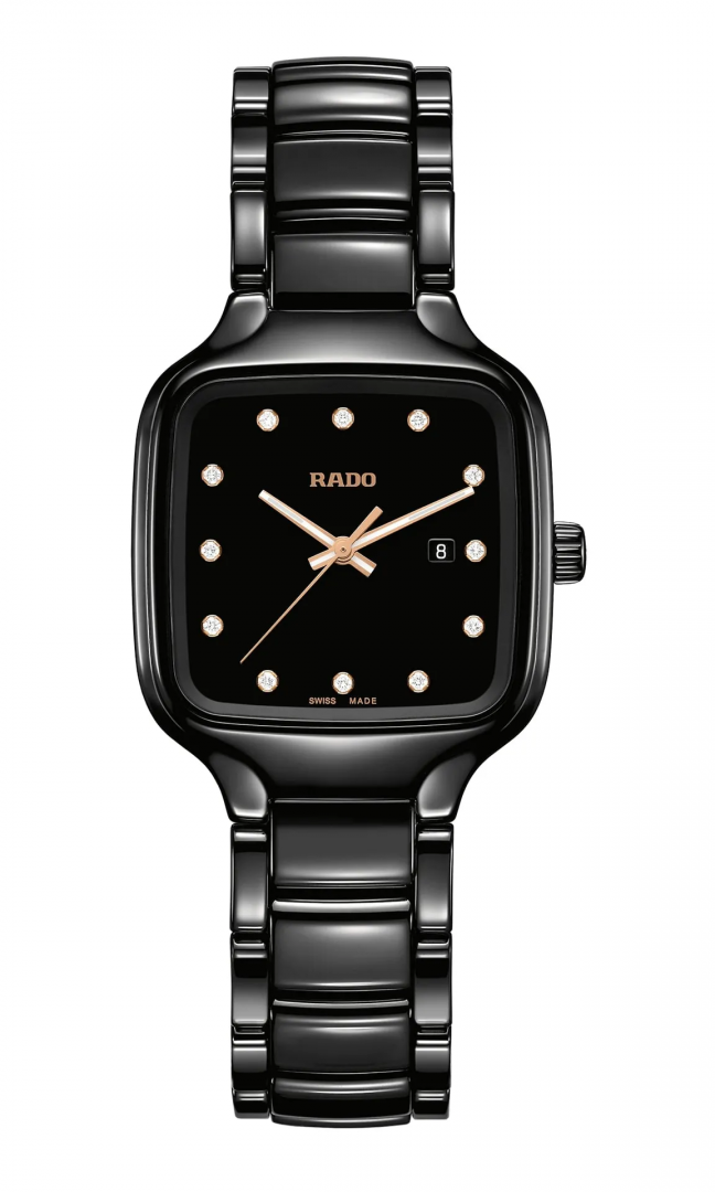 Rado True SQUARE DIAMONDS Diamante, Quartz, 29 mm. Die Uhr hat folgende Funktionen: Datum , Lumineszenz und E.O.L.. Die Grundparameter der Uhr sind: wasserabweisend ist 50 m, bewegungsart ist Quarzuhren, ziffernblattfarbe ist schwarz und armbandmaterial ist Keramik.