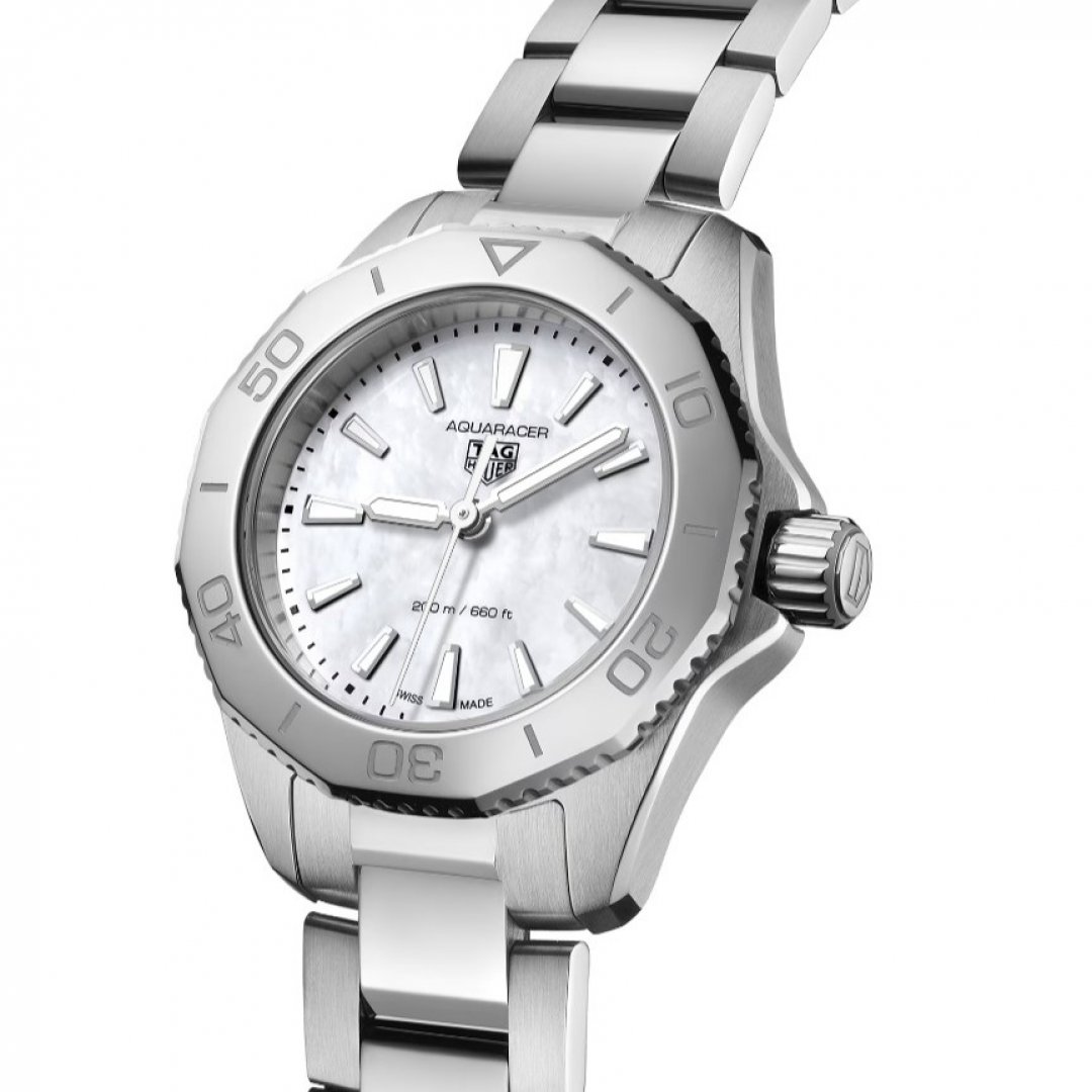 TAG Heuer Aquaracer PROFESSIONAL 200 Quartz, Wasserdicht 200M, 30 mm. Die Uhr hat folgende Funktionen: Lumineszenz. Die Grundparameter der Uhr sind: ziffernblattfarbe ist perlmuttern, bewegungsart ist Quarzuhren, armbandmaterial ist Stahl und wasserabweisend ist 200 m.