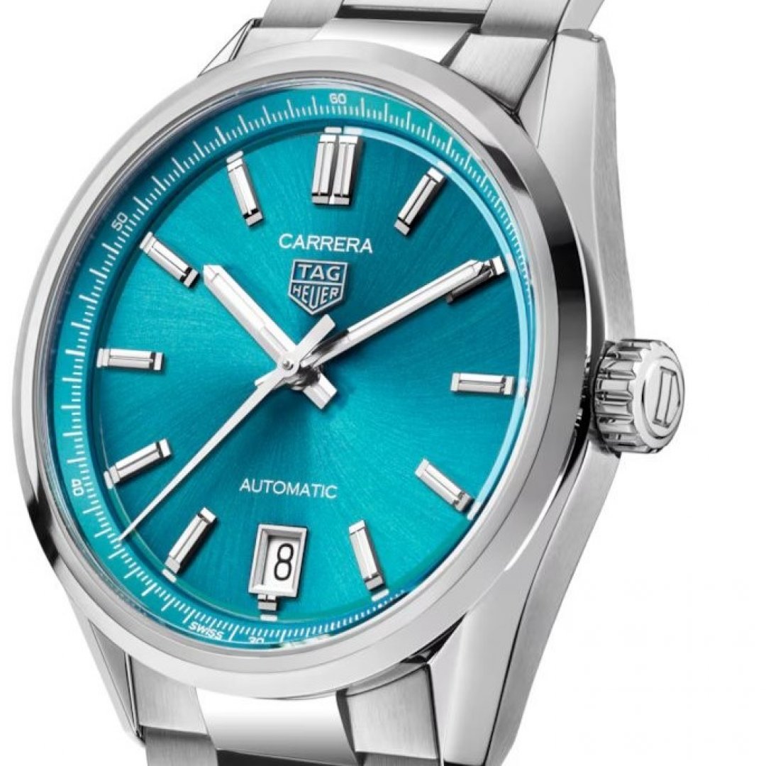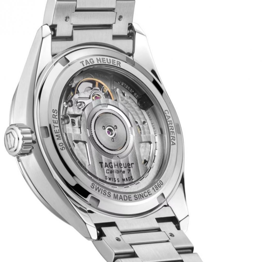 TAG Heuer Carrera Calibre 7, Automatik, 36 mm. Die Uhr hat folgende Funktionen: Lumineszenz und Datum . Die Grundparameter der Uhr sind: bewegungsart ist mechanische Uhr mit automatischem Aufzug, armbandmaterial ist Stahl, wasserabweisend ist 50 m und ziffernblattfarbe ist blau.