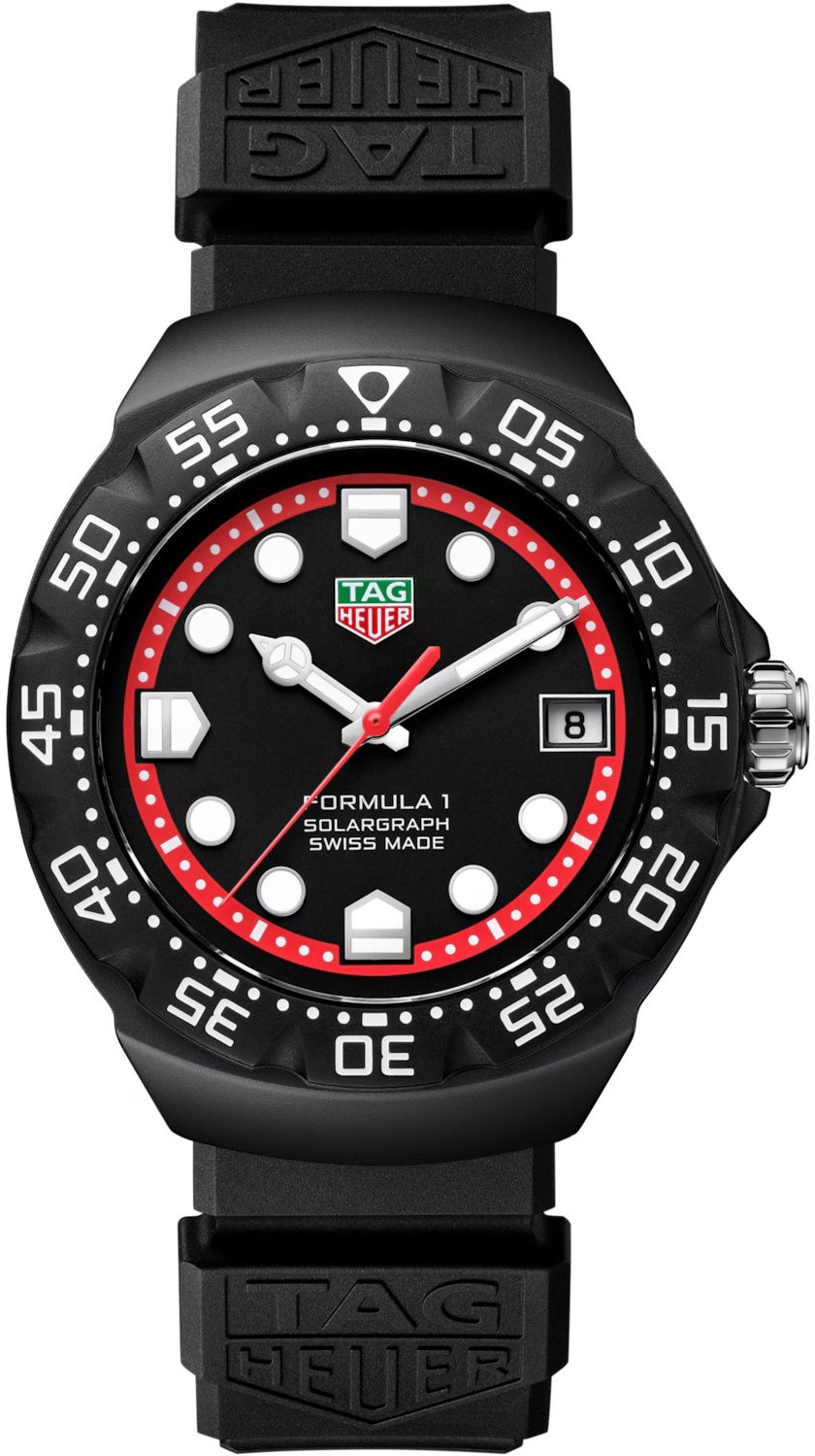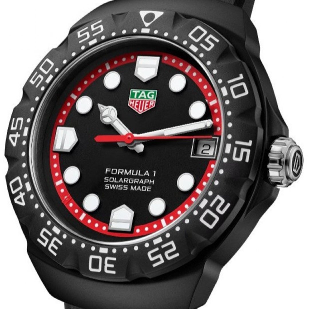 TAG Heuer Formula 1 Solargraph Limited Edition Wasserdicht 100M, Quartz, 38 mm. Die Uhr hat folgende Funktionen: Lumineszenz und Datum . Die Grundparameter der Uhr sind: bewegungsart ist Quarzuhren, ziffernblattfarbe ist weiß und rot, wasserabweisend ist 100 m und armbandmaterial ist Gummi.