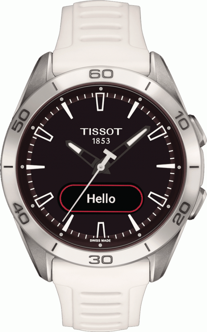 Tissot T-Touch Connect Sport Bluetooth, Solar, 43 mm. Die Uhr hat folgende Funktionen: Alarm, Dualzeit, Datum, Lumineszenz, Herzfrequenzüberwachung, Beleuchtung, Countdown, Stoppuhr, Weltzeit, Trainingsfunktionen, Datum , ewiger Kalender, Höhenmesser , multifunktional, Bluetooth®, Touchscreen und Barometer. Die Grundparameter der Uhr sind: ziffernblattfarbe ist schwarz, bewegungsart ist Quarzuhren und spezial, wasserabweisend ist 50 m und armbandmaterial ist Gummi.