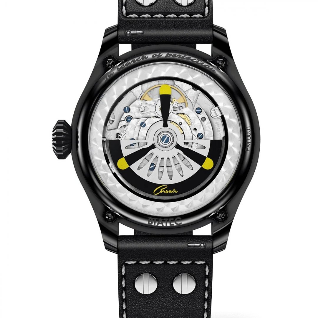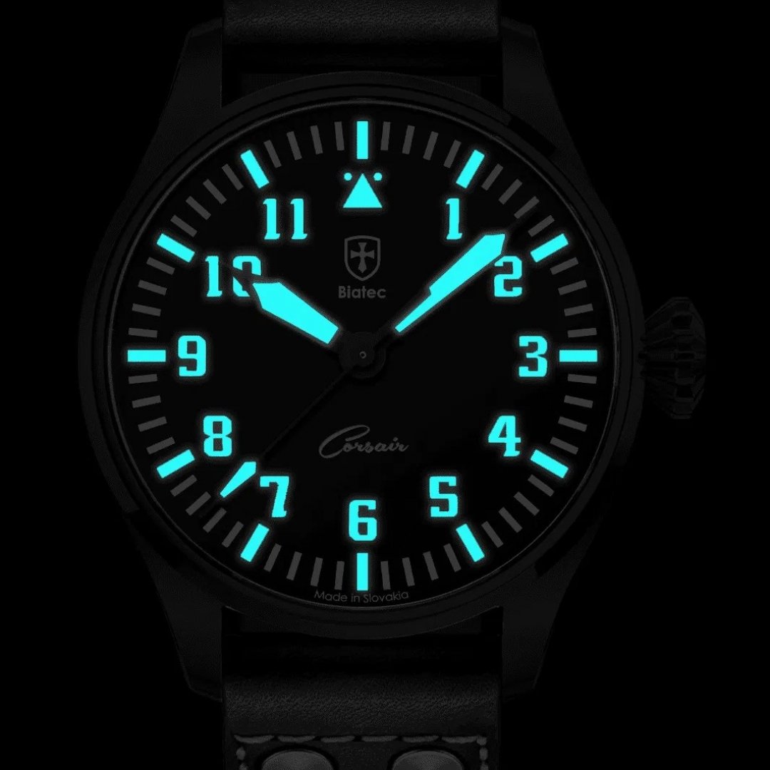 luxury watches Biatec CORSAIR Vintage Automatic, Water resistance 100M, 40 mm. The watch has functions luminescence. Basic parameters of the watch are: movement type is mechanical watch with automatic winding, strap material is leather, water resistance is 100 m and dial colour is black.