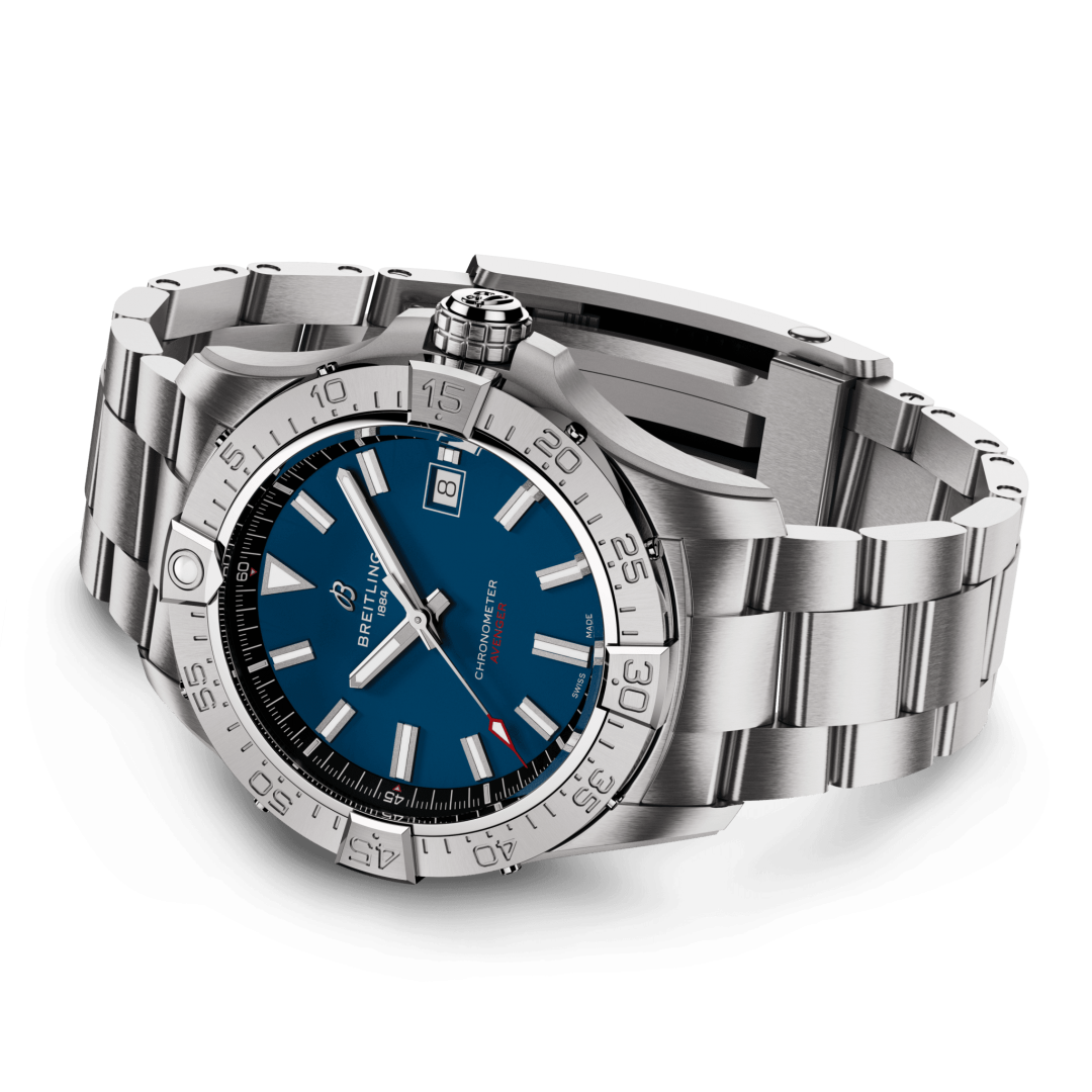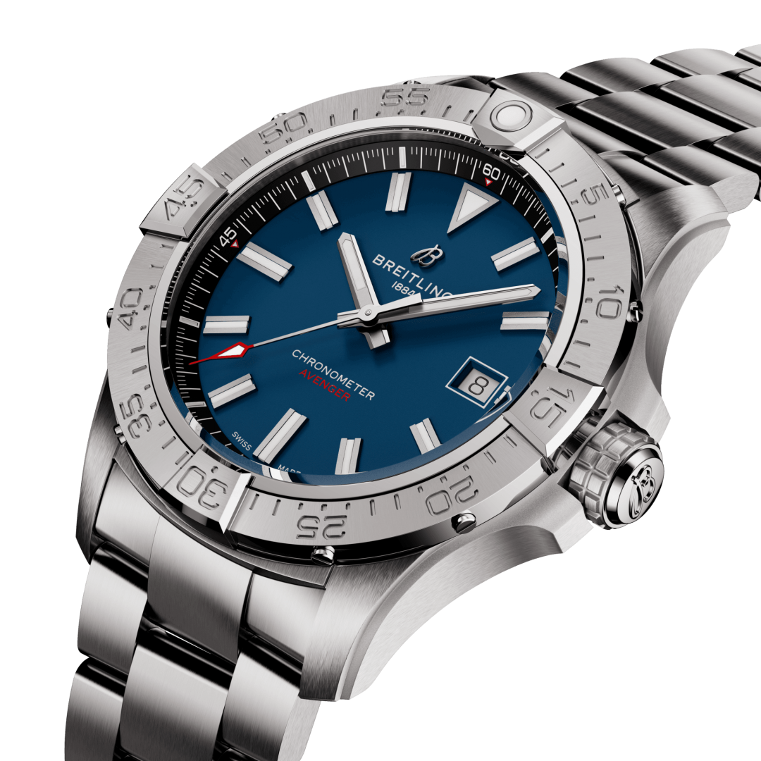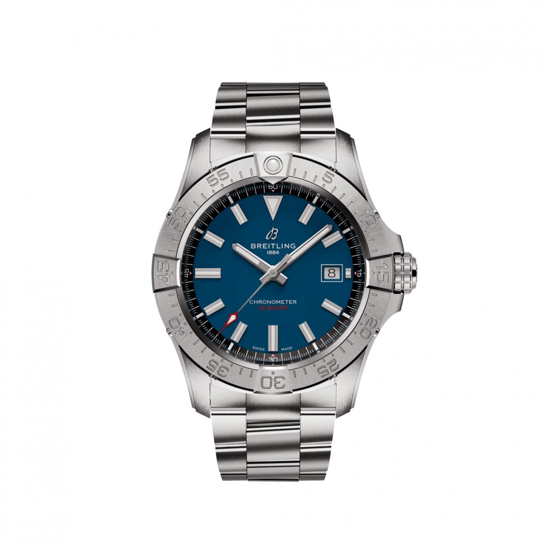 luxury watches Breitling Avenger Automatic 42 Automatic, Water resistance 300M, 42 mm. The watch has functions luminescence and date . Basic parameters of the watch are: water resistance is 300 m, movement type is mechanical watch with automatic winding, strap material is steel and dial colour is blue.