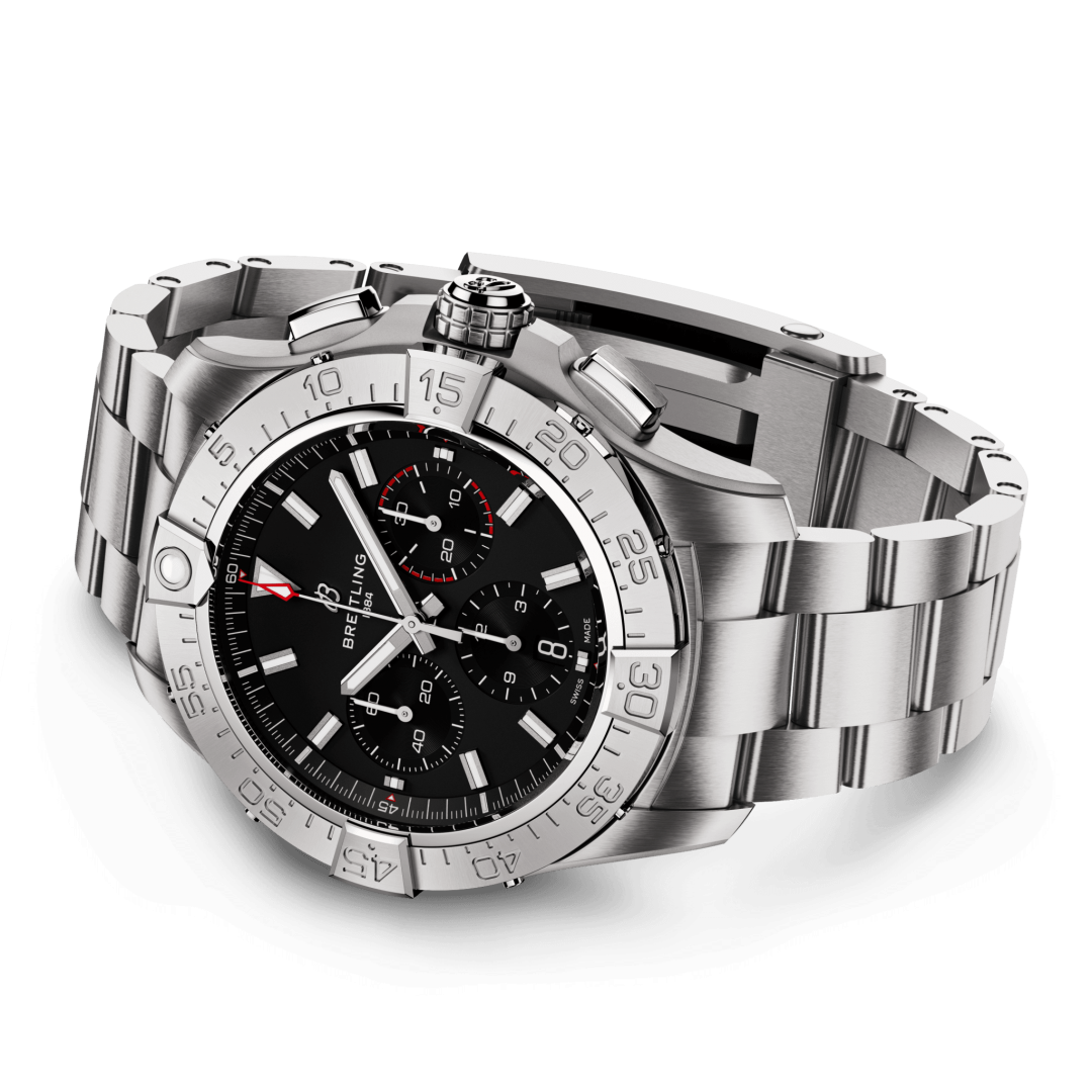 Development and progress culminated in the creation of the first IN-HOUSE caliber, designated 01. It had a 3-day power reserve, a high-precision chronograph, and a 5-year warranty. Manufactured and assembled 100% IN-HOUSE at the newly built Breitling Chronometrie factory in La Chaux-de-Fonds. The new movement immediately attracted the attention of both experts and the general public, with experts ranking the Caliber 01 among the ten best chronographs in the world. The motto "Instruments for professionals" says it all.