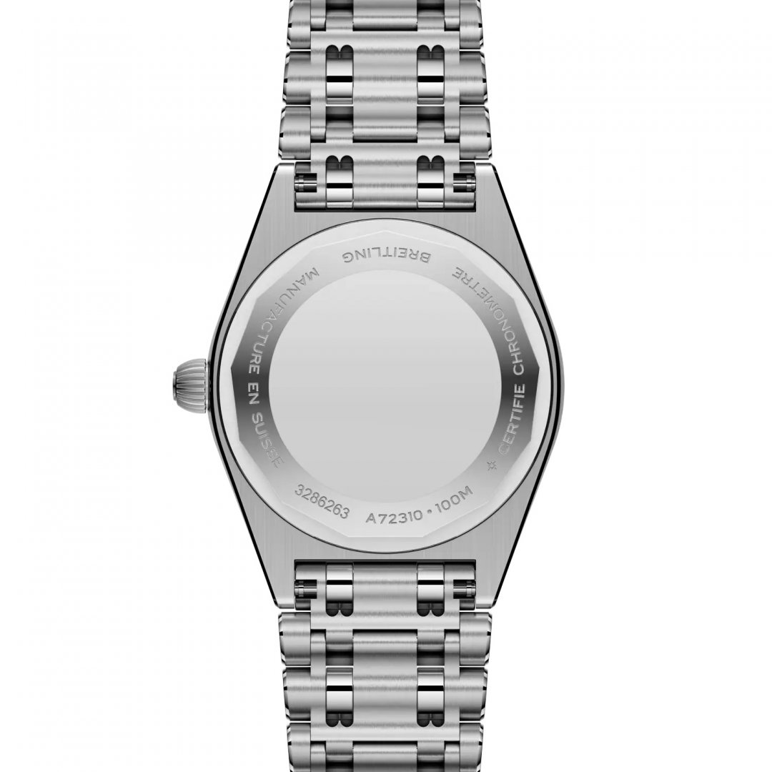 luxury watches Breitling Chronomat 28 Diamonds, Quartz, 28 mm. The watch has functions luminescence, date and E.O.L.. Basic parameters of the watch are: strap material is steel, water resistance is 100 m, movement type is Quartz watches and dial colour is pearl.