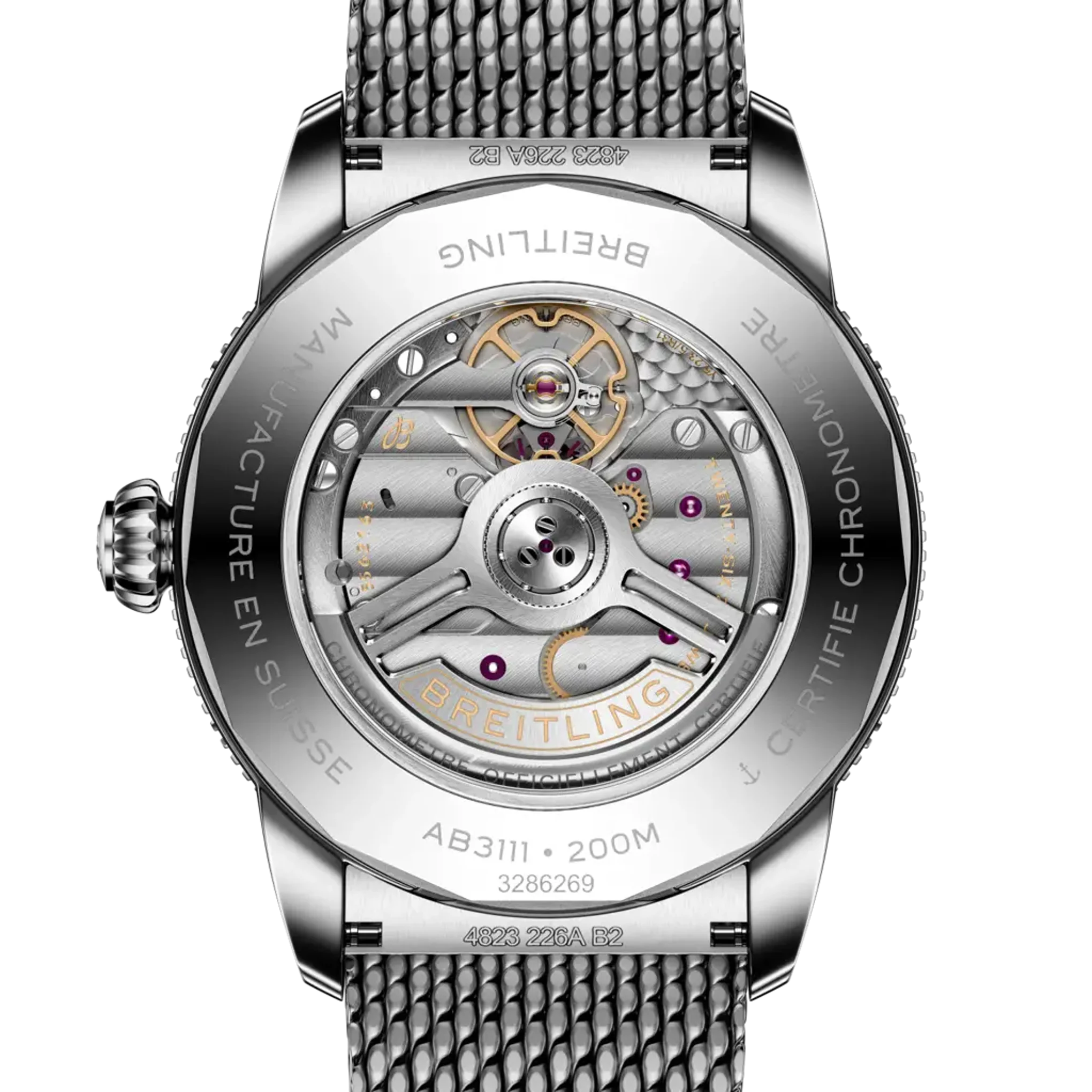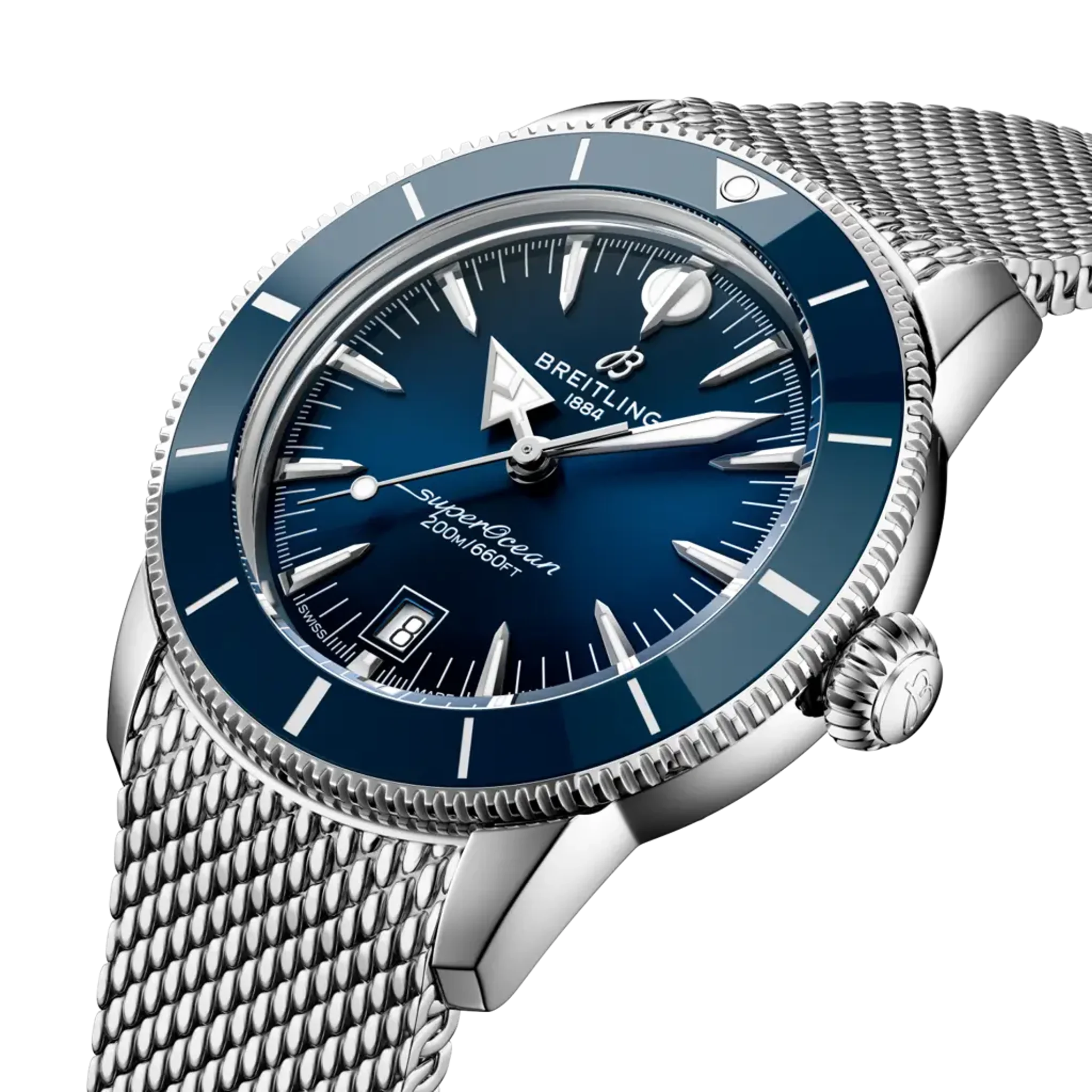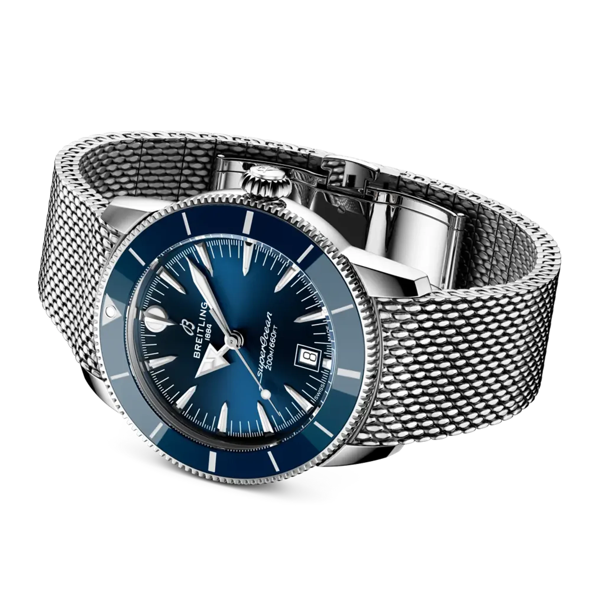 The Superocean Heritage B31 Automatic 42 blends the iconic 1957 design with modern engineering and the Breitling B31 manufacture movement. Its blue dial and matching bezel create a refined, timeless aesthetic, complemented by a stainless‑steel bracelet. With excellent durability and precision, it is a versatile everyday companion.