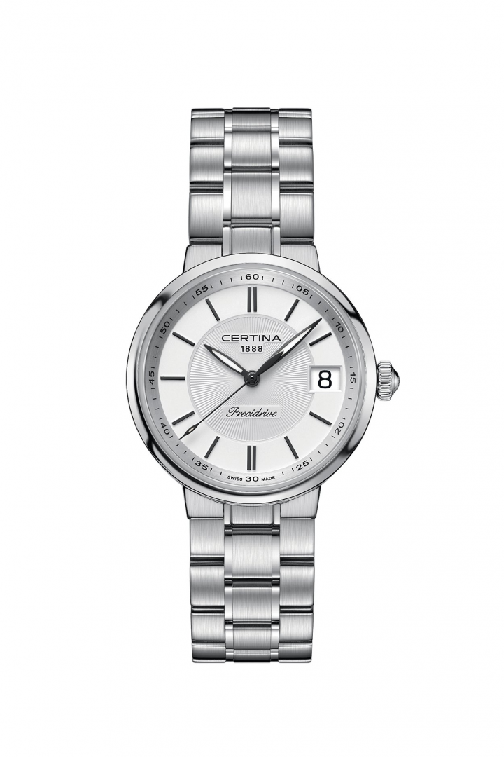 Fashion watches Certina DS Stella Indexes, Quartz, 31.6 mm. The watch has functions luminescence, date and E.O.L.. Basic parameters of the watch are: dial colour is silver, movement type is Quartz watches, strap material is steel and water resistent is 100 m.