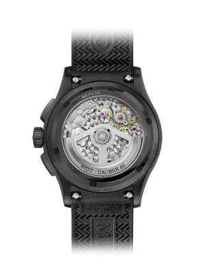 The transparent dial also reveals the mysteries of the new skeletonized movement, dubbed Caliber 60. The movement boasts a power reserve of up to 60 hours, giving its wearer autonomy that fits well with the rhythm of everyday life. The hairspring made of Nivachron titanium alloy used in the movement offers significant advantages over traditional solutions in terms of resistance to magnetic fields, temperature fluctuations, and shocks. Another highlight of the movement is the skeletonized oscillating weight, which further enhances the technical prestige of the watch. Mido guarantees water resistance to a pressure of 10 bar/100 meters.