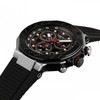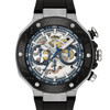 Unlike the mechanical version, the quartz watch features a chronograph tenth of a second hand at 2 o'clock, a seconds hand at 6 o'clock and a 30-minute counter at 10 o'clock. This quartz watch is a limited edition of only 8,000 pieces and comes in a unique helmet-shaped gift box.