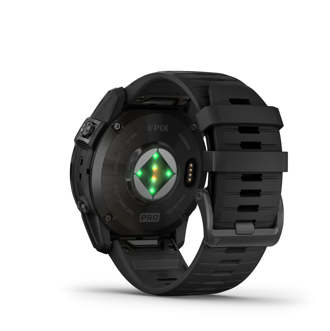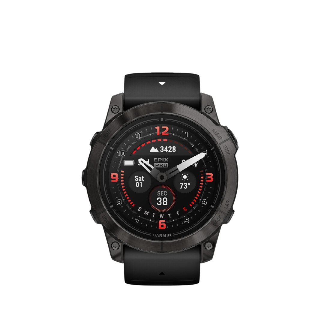 sport watches luxury watches Garmin Epix (Gen 2), Sapphire, Black, Carbone Gray DLC Titanium, Silicone Band 47 mm, AMOLED display. Basic parameters of the watch are: movement type is special, strap material is silicone and water resistance is 100 m.