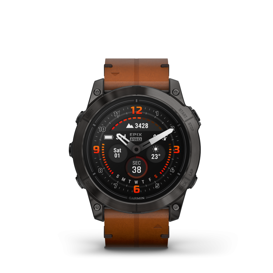 sport watches luxury watches Garmin Epix (Gen 2), Sapphire, Black, Carbone Gray DLC Titanium, Silicone Band 47 mm, AMOLED display. Basic parameters of the watch are: movement type is special, strap material is silicone and water resistance is 100 m.